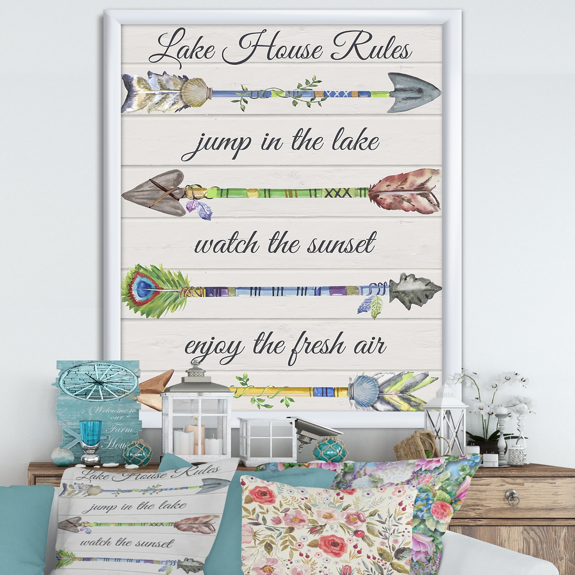 Designart "Sentimental Arrows-Lake House Rules" Lake House Framed Art Print