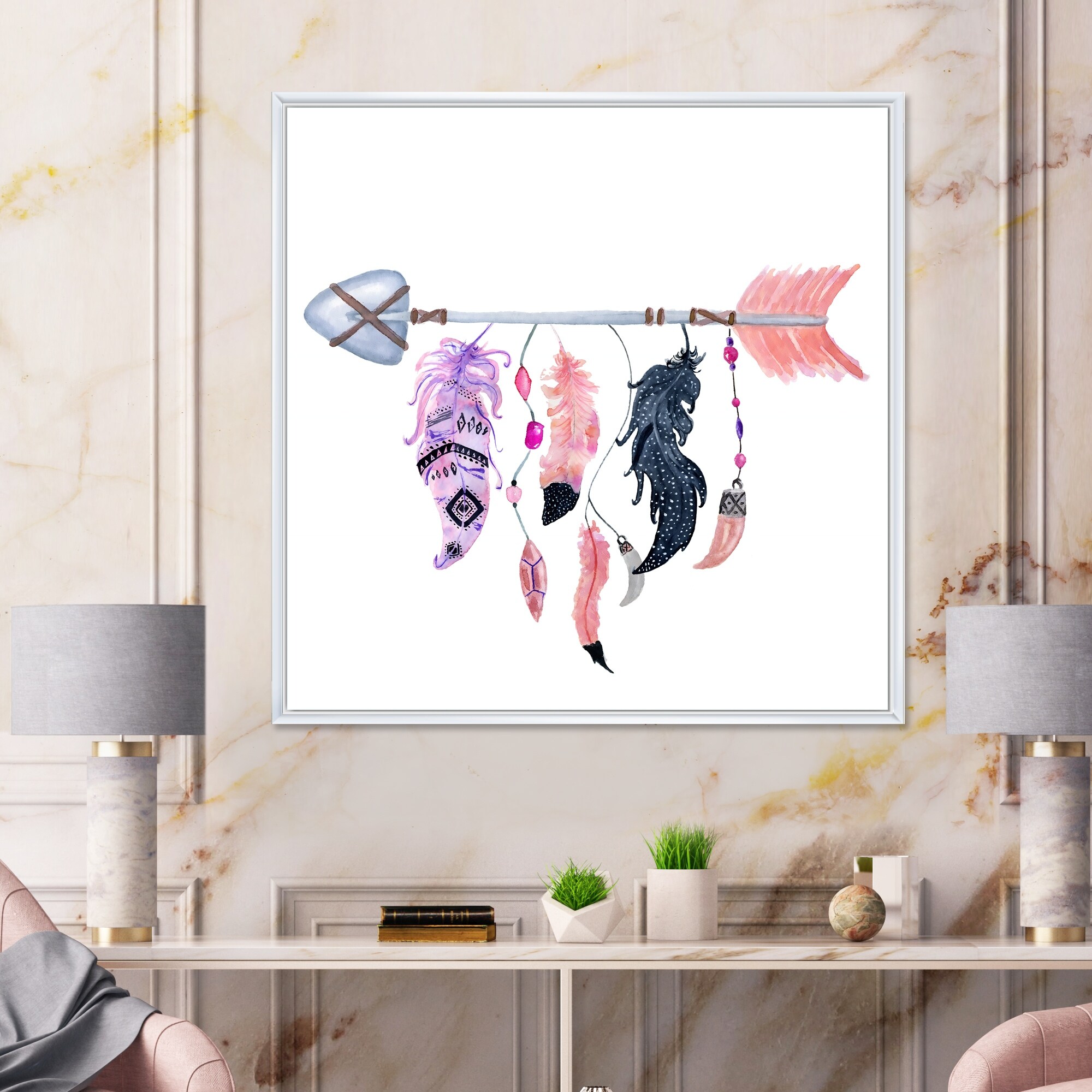Designart "Boho Arrow With Feathers" Scandinavian Framed Canvas Wall Art Print