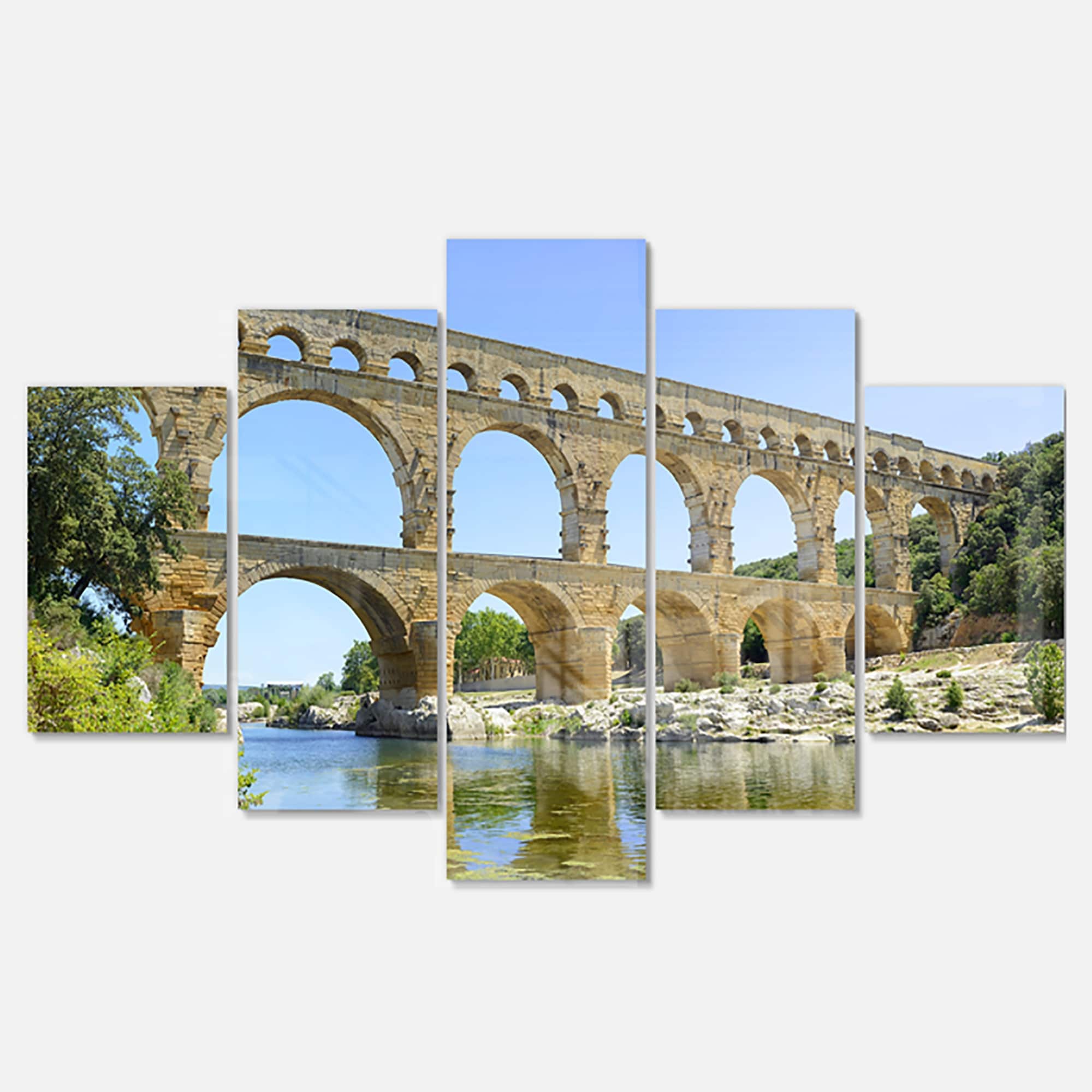 Designart 'Roman Aqueduct Bridge in France' Bridge Glossy Metal Wall Art
