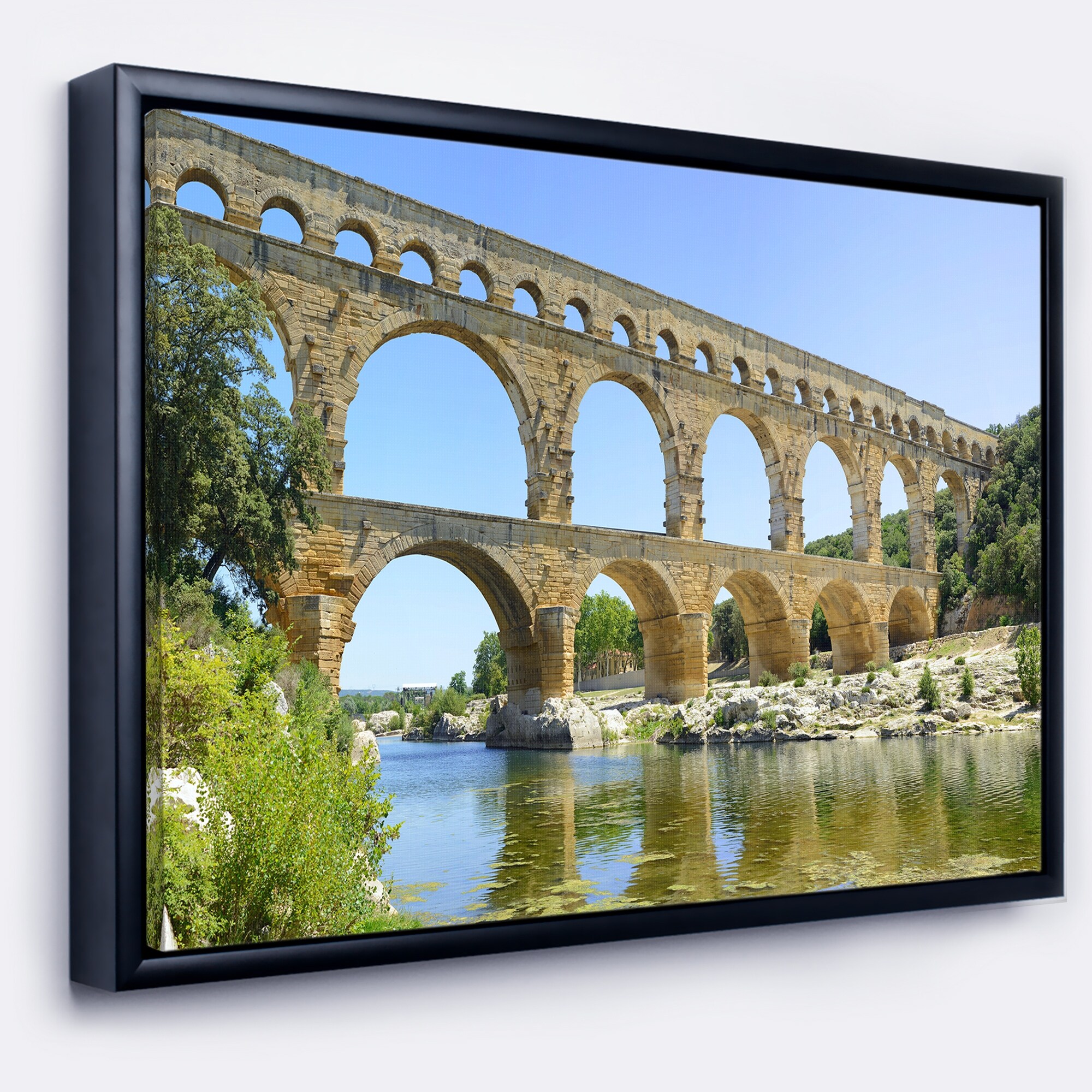 Designart "Roman Aqueduct Bridge in France" Bridge Framed Canvas Wall Art