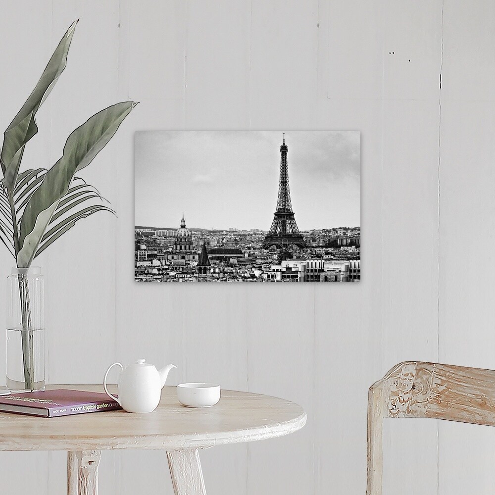 "View of city and Eiffel Tower, Paris, France." Canvas Wall Art