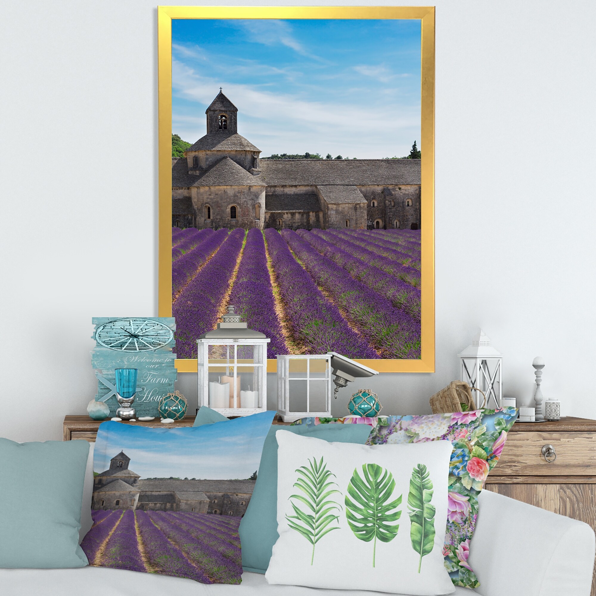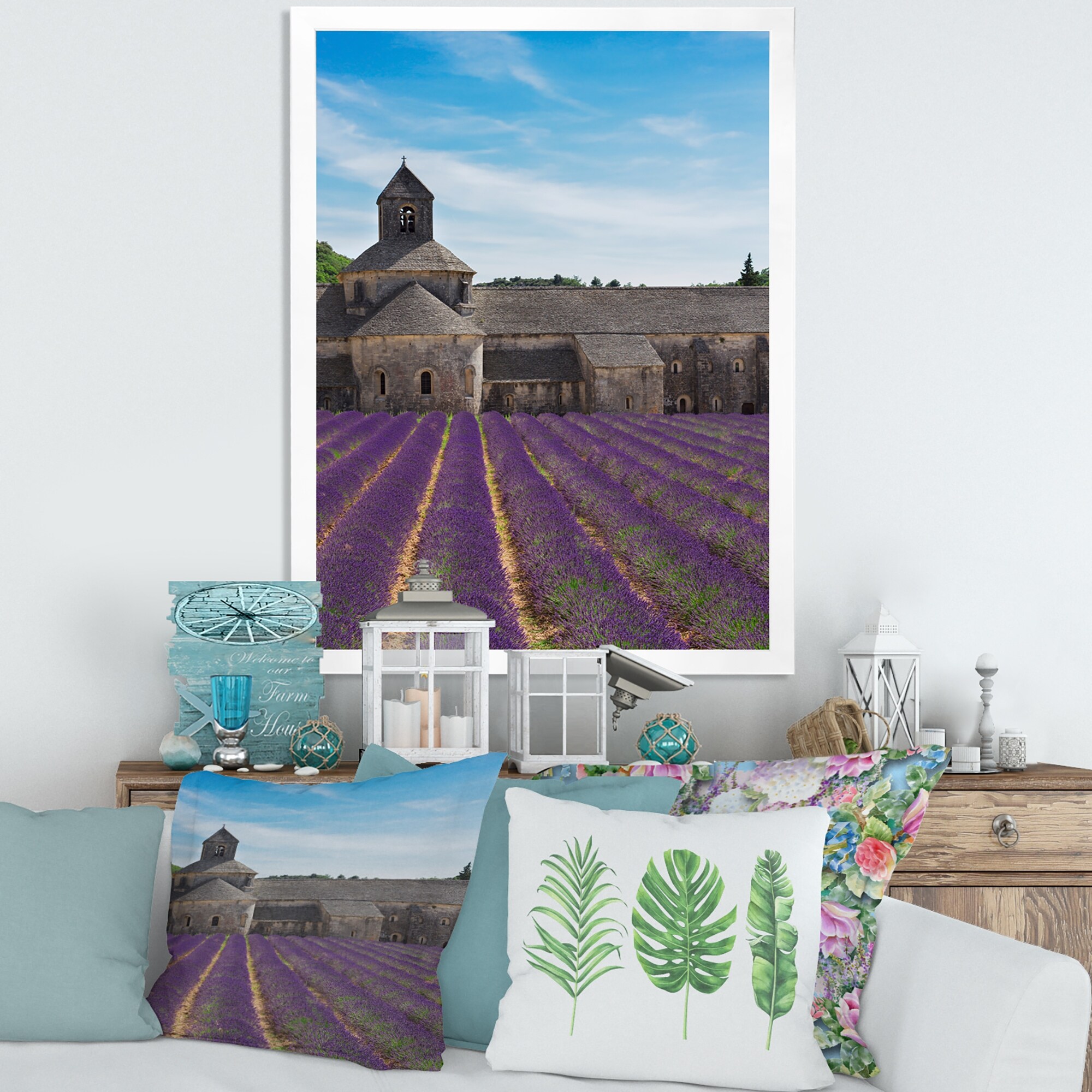 Designart "Lavender Field With Abbey in France" Farmhouse Framed Art Print