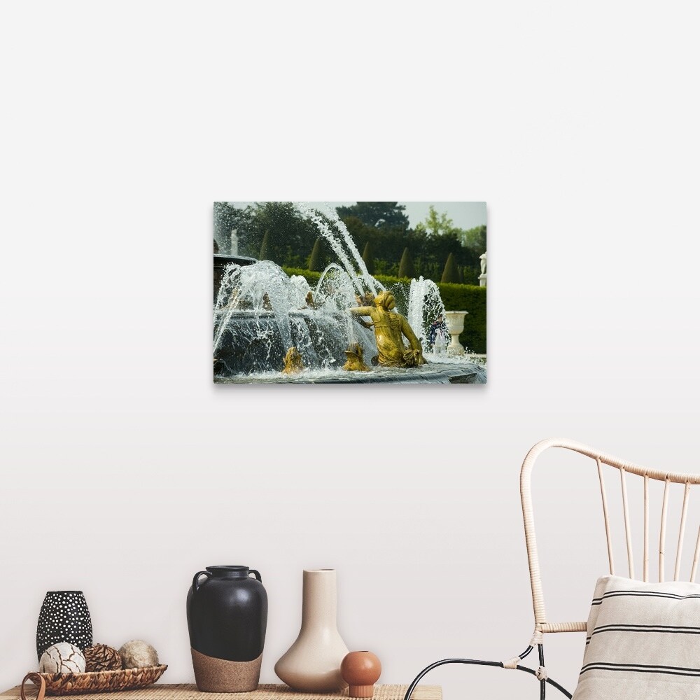 "Fountain in a garden, Bassin De Latone, Versailles, Paris, Ile de France, France" Canvas Wall Art