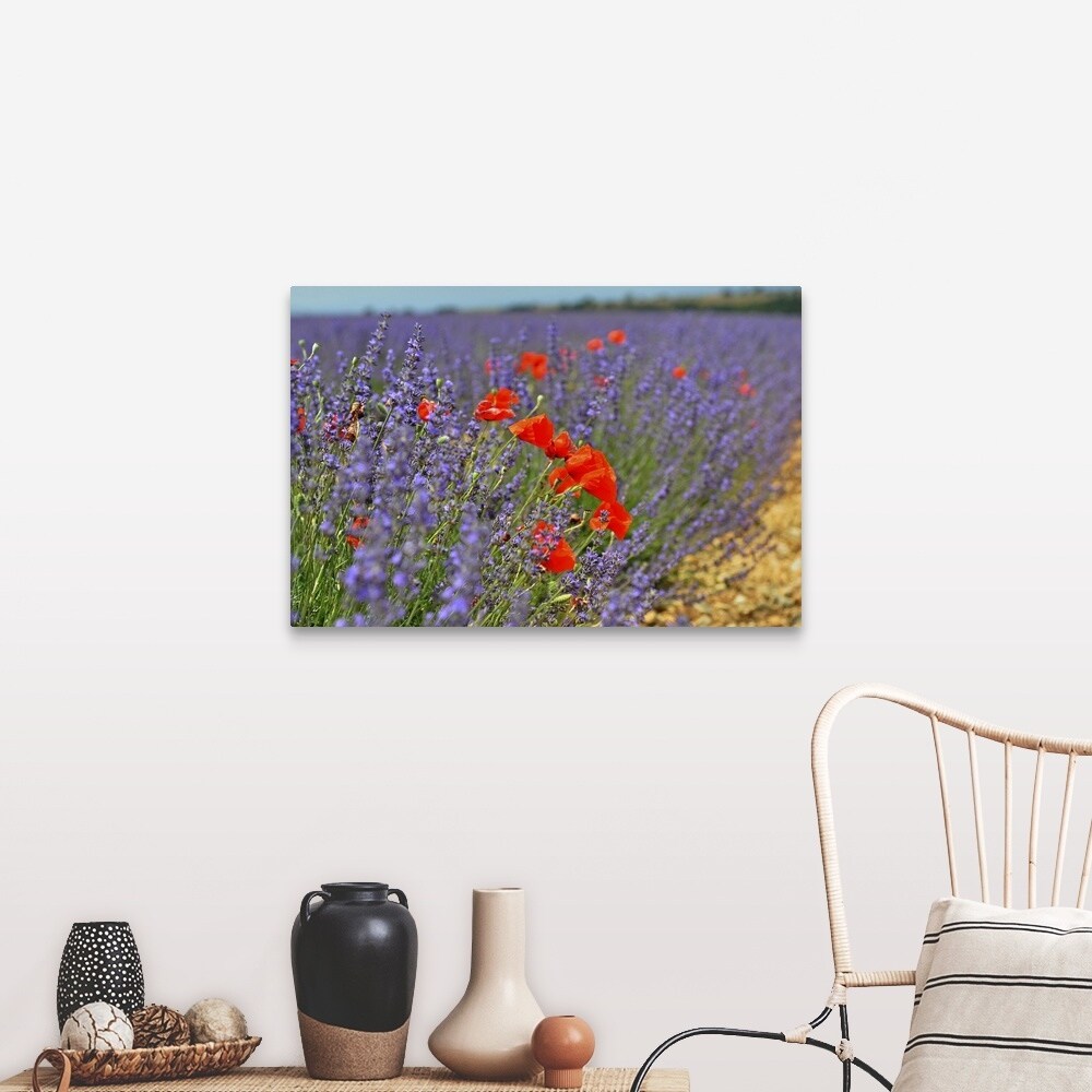 "Poppies in a lavender field, Provence, France" Canvas Wall Art