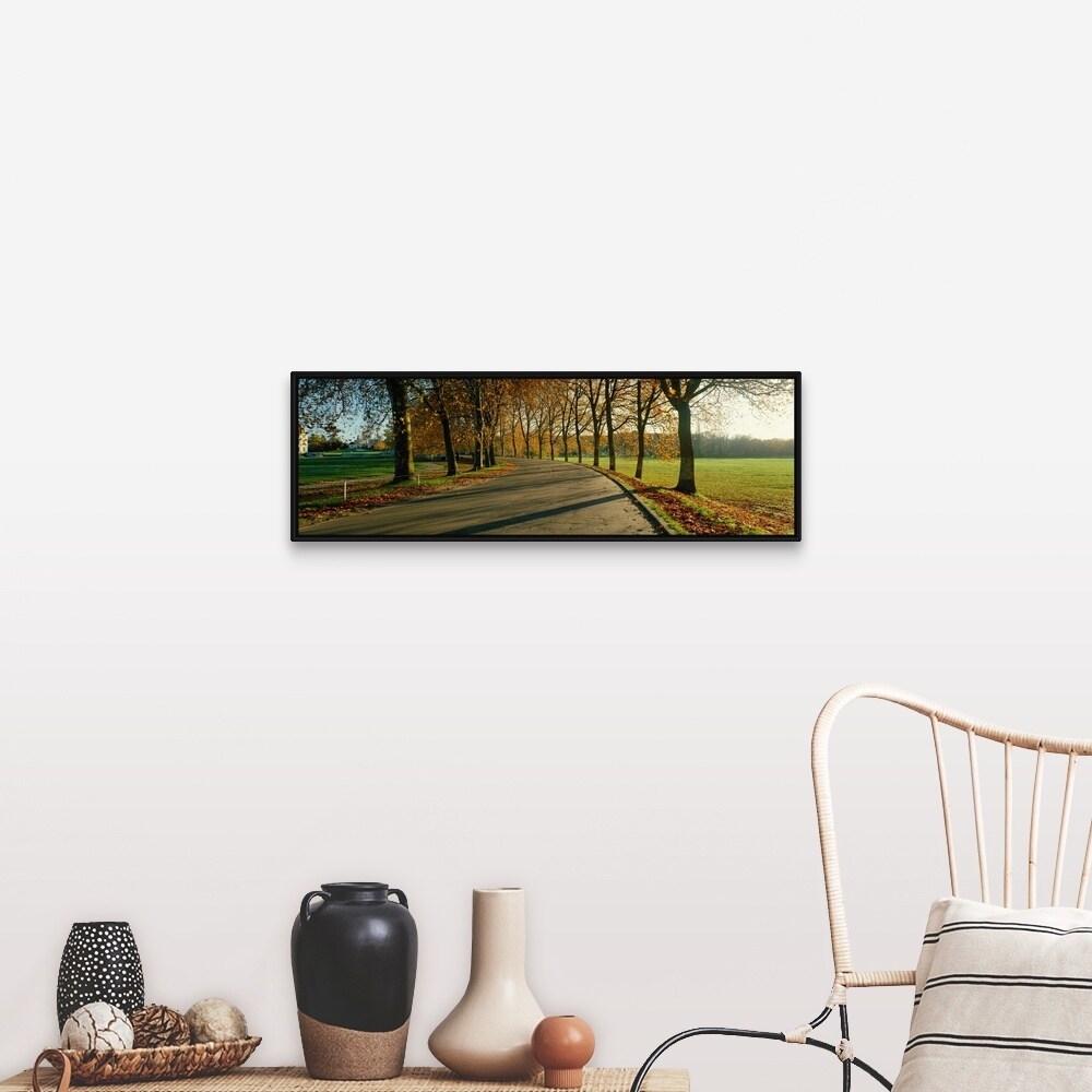 "Road at Chateau Chambord France" Black Float Frame Canvas Art