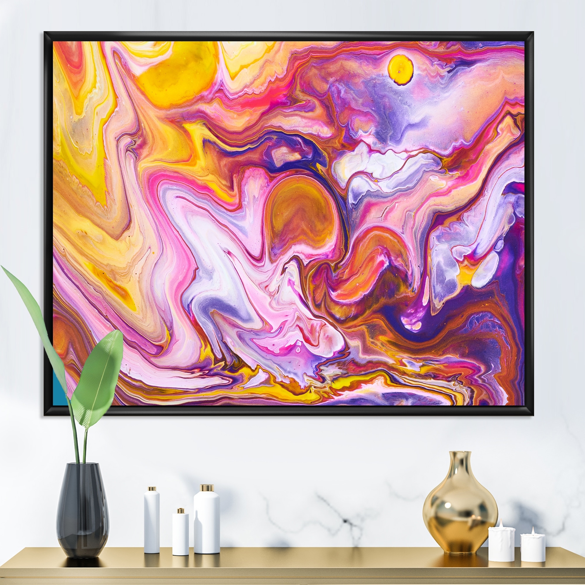 Designart "Multi & Pink Acrylic Fluid Art II" Abstract Framed Canvas artwork