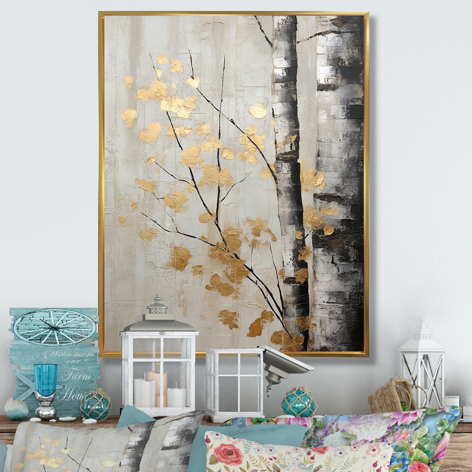 Designart "Tree Whispers of Gray And Gold" Tree Monochrome Framed Canvas Print