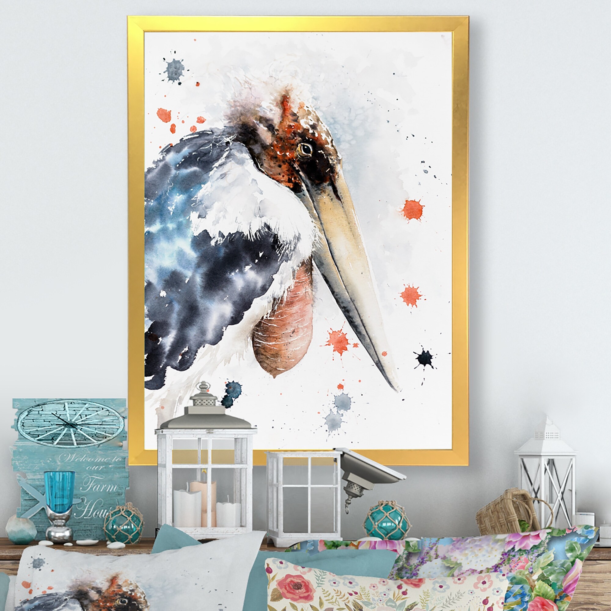 Designart "Abstract Portrait of Marabou Stork" Traditional Framed artwork