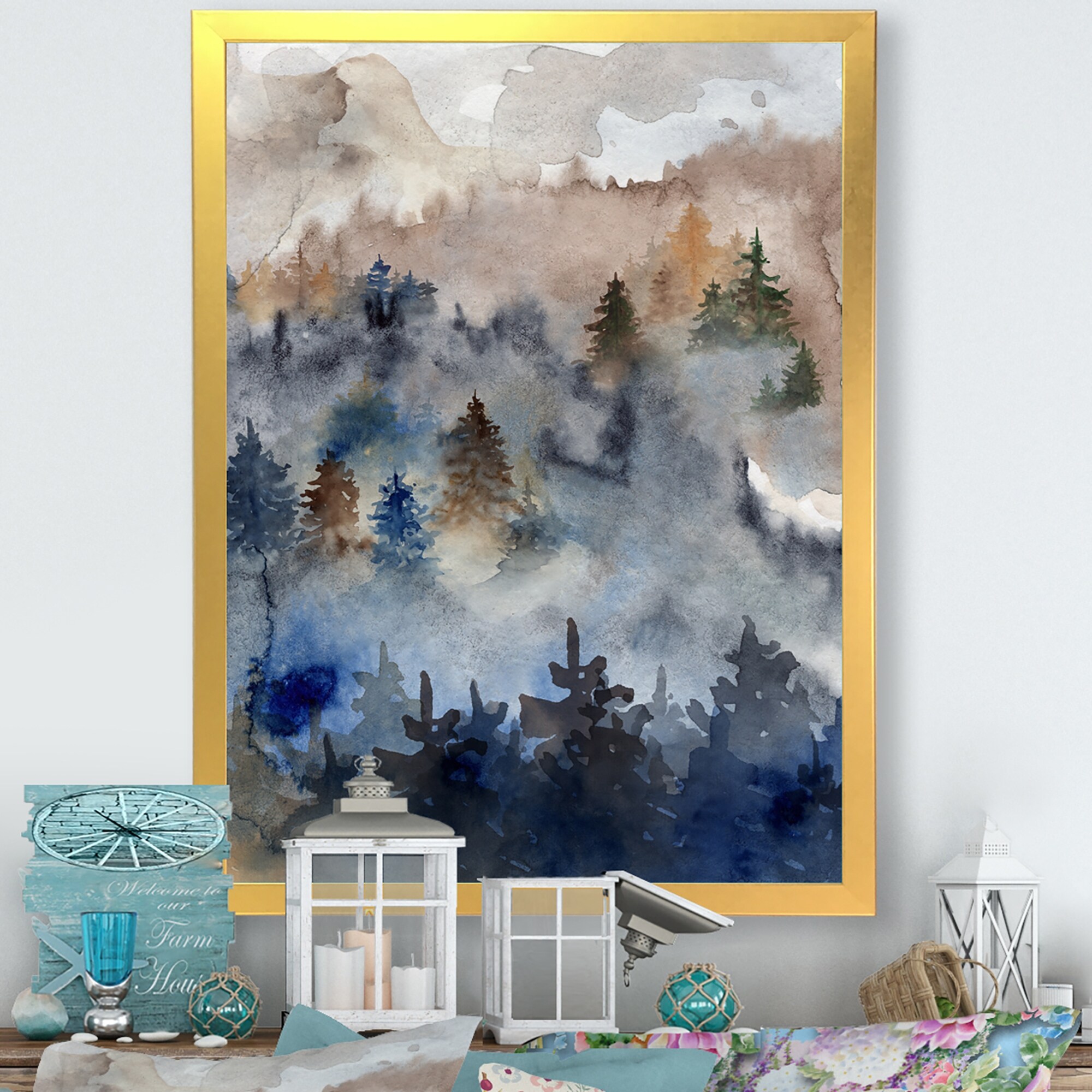 Designart "Forest Landscape Liquid Art" Abstract Framed artwork