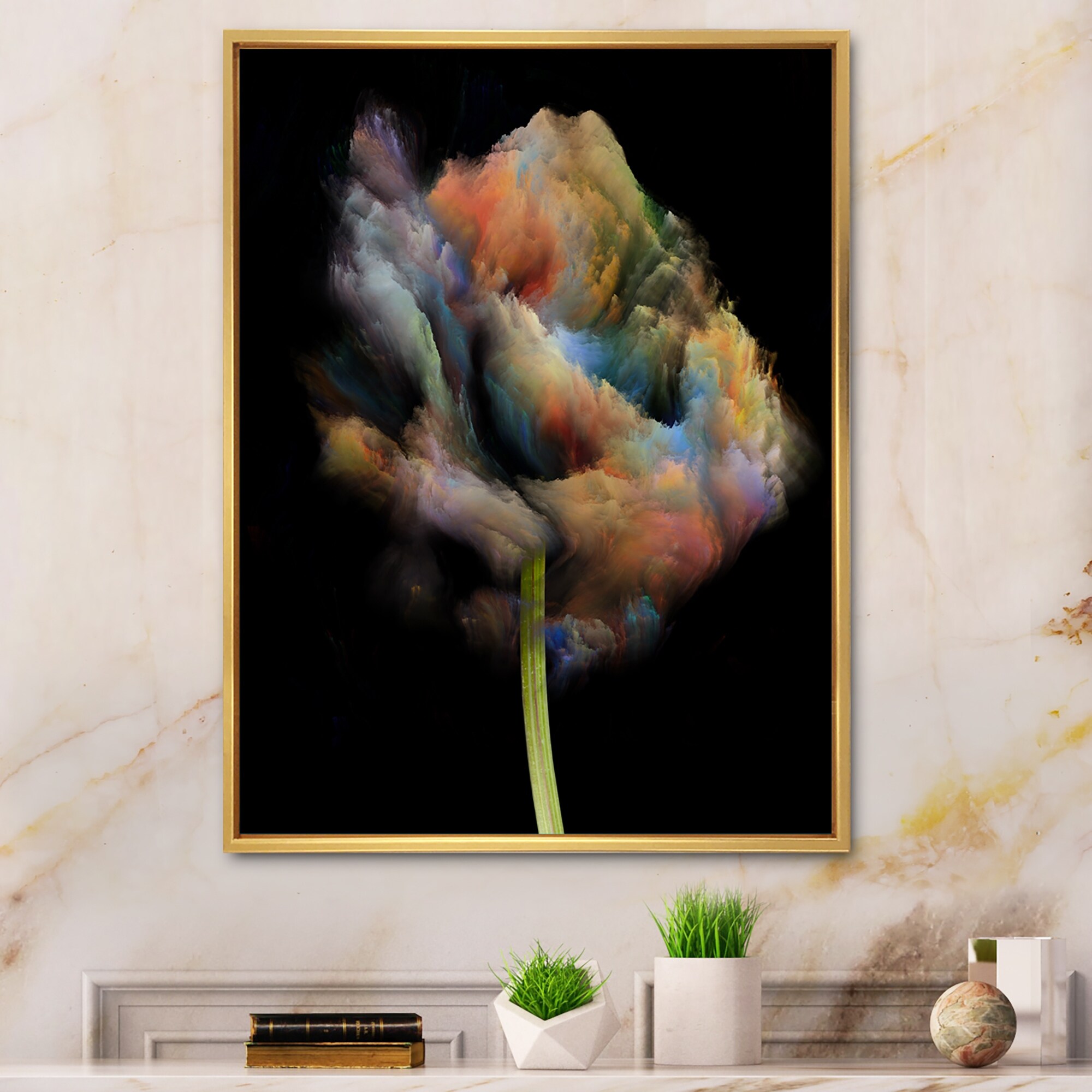 Designart "Blooming Multicolor Fractal Flower VIII" Modern Floral Framed Canvas artwork