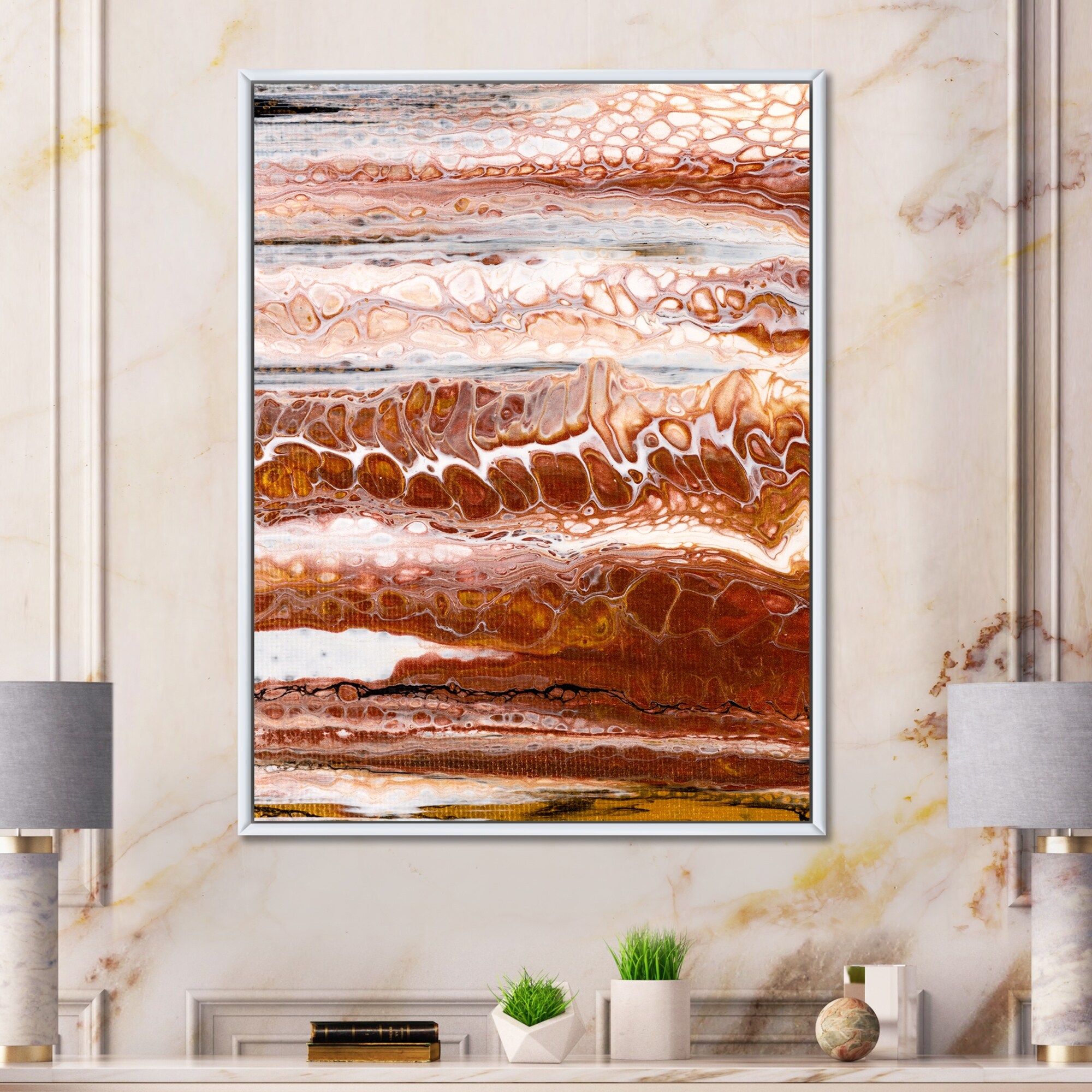 Designart "Organic Shapes in Brown And Black Marble Art" Abstract Framed Canvas artwork