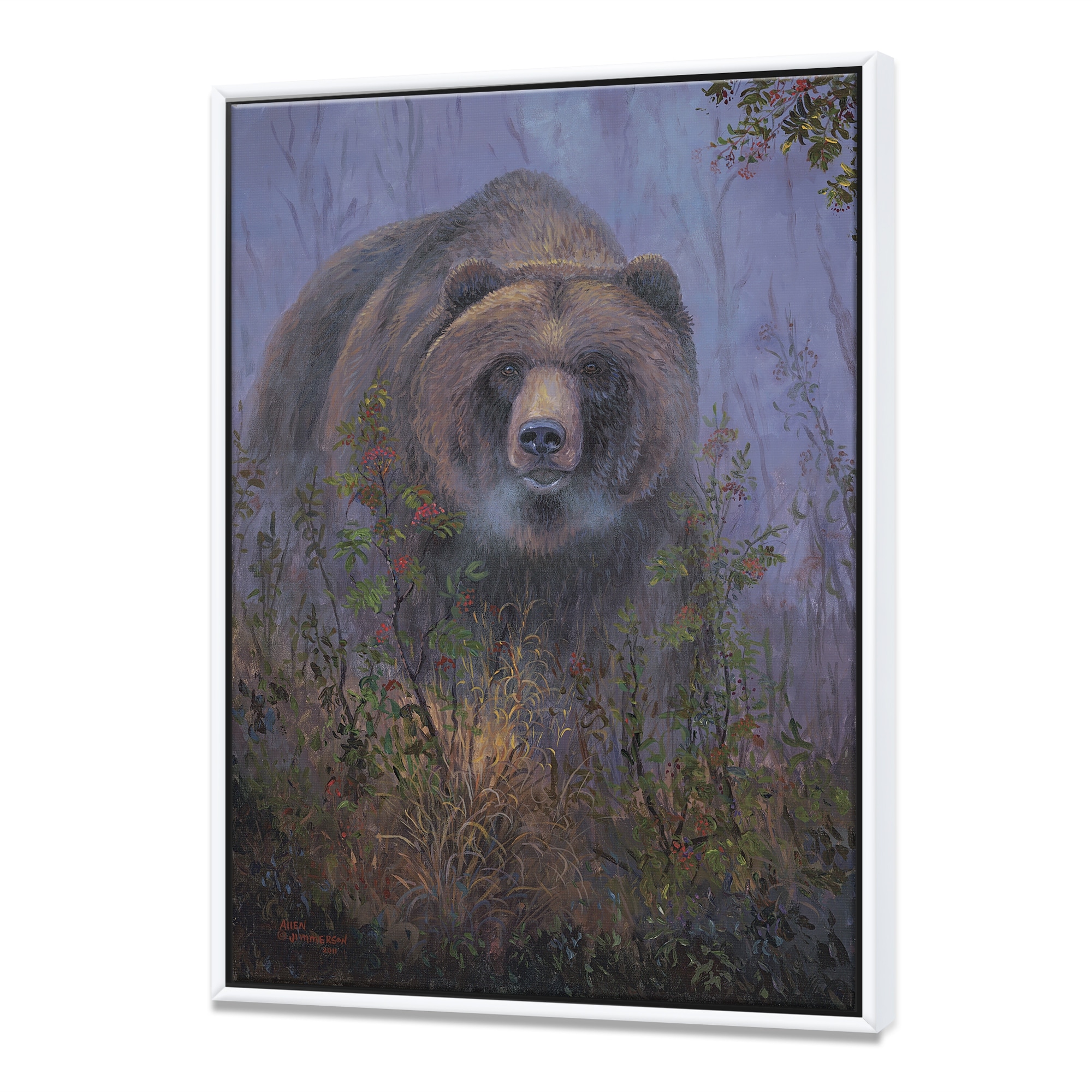 Designart "Mountain Ash Grizzly" Traditional Framed Canvas Artwork Print