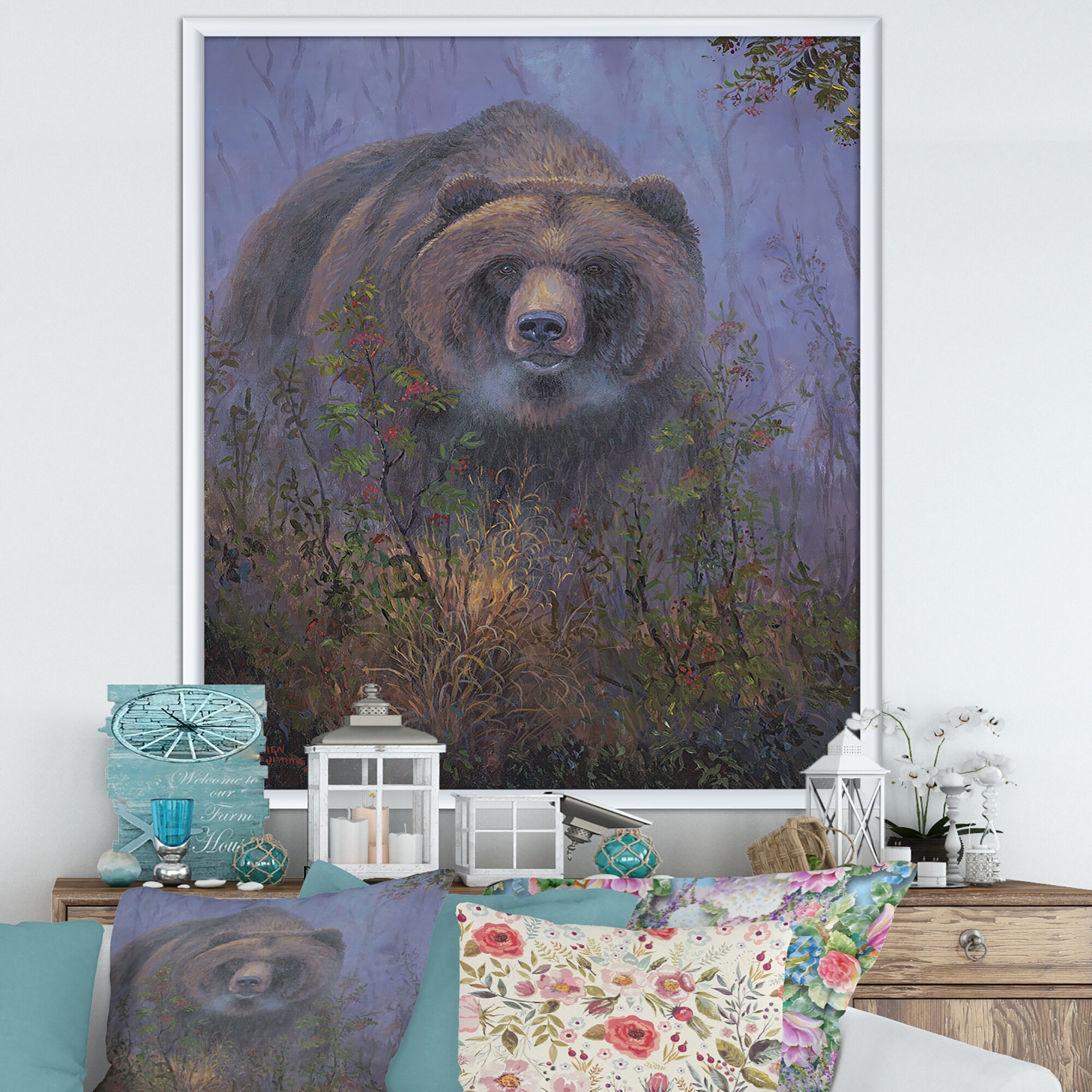 Designart "Mountain Ash Grizzly" Traditional Framed Art Print