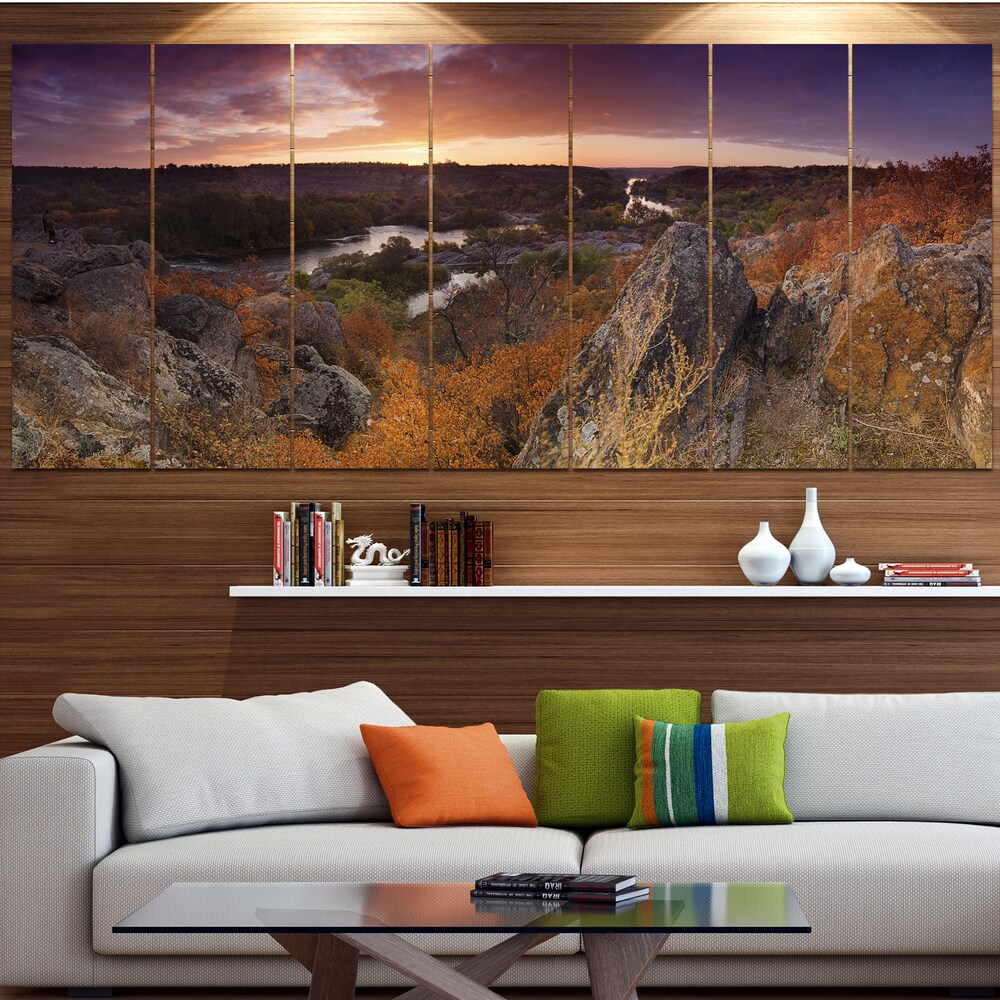 Designart "Rural Autumn Sunset Panorama" Modern Landscpae Wall Art - Multi-color