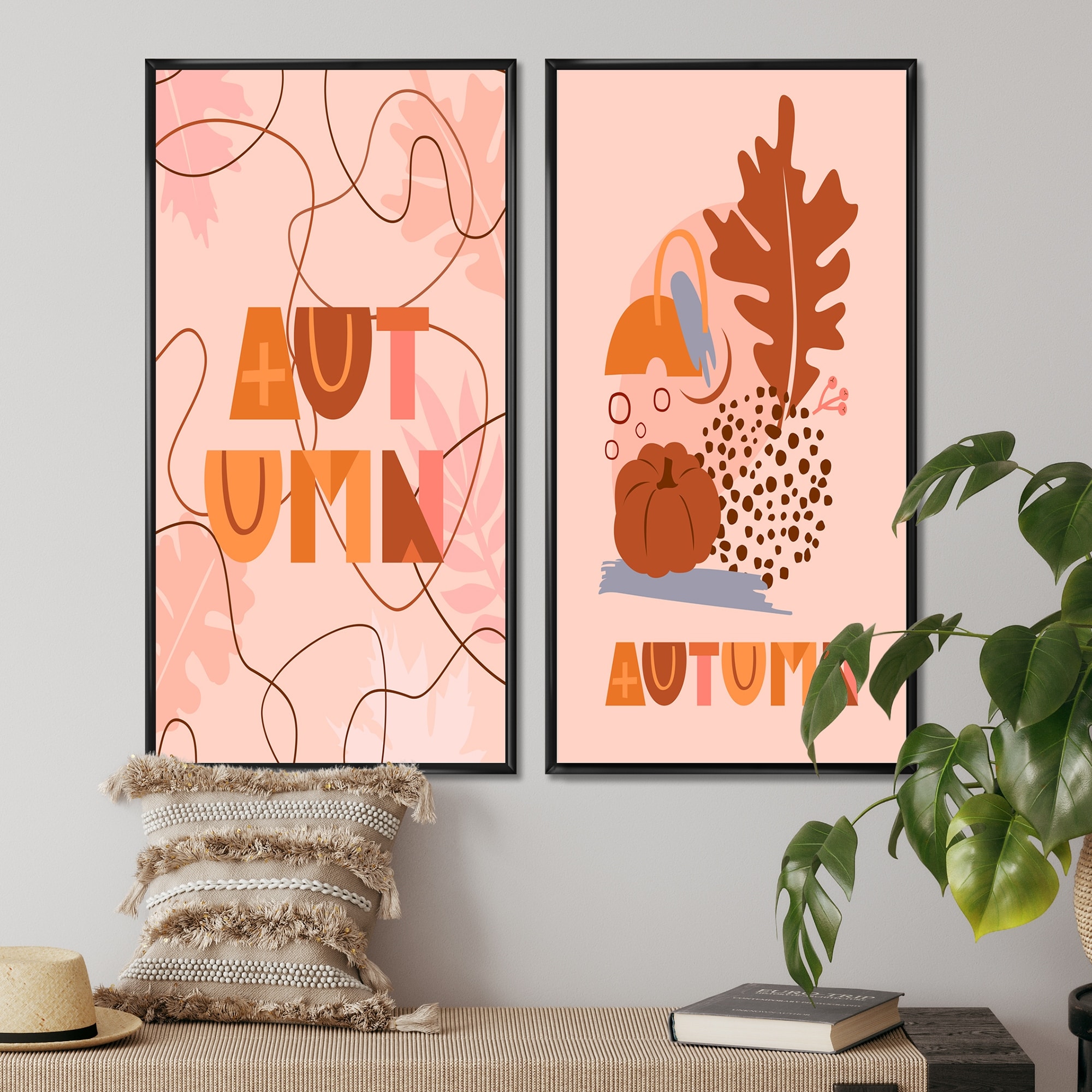 Designart "Pink Floral Autumn Decor I" Abstract Framed Art Set of 2 Pieces
