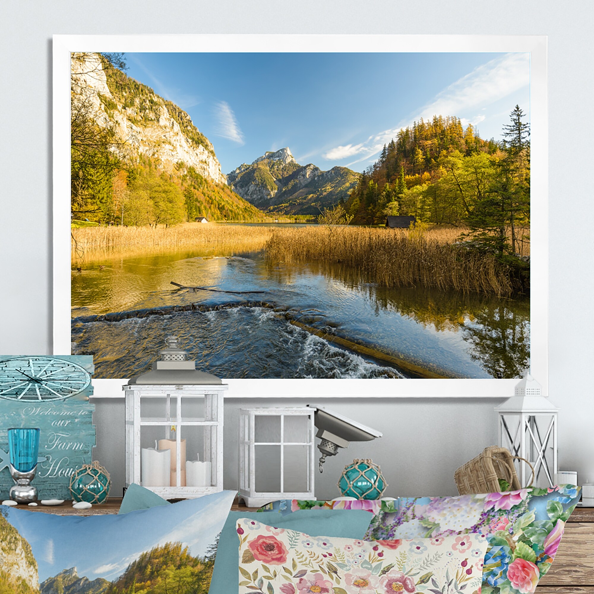 Designart "Lake In Autumn" Traditional Framed artwork