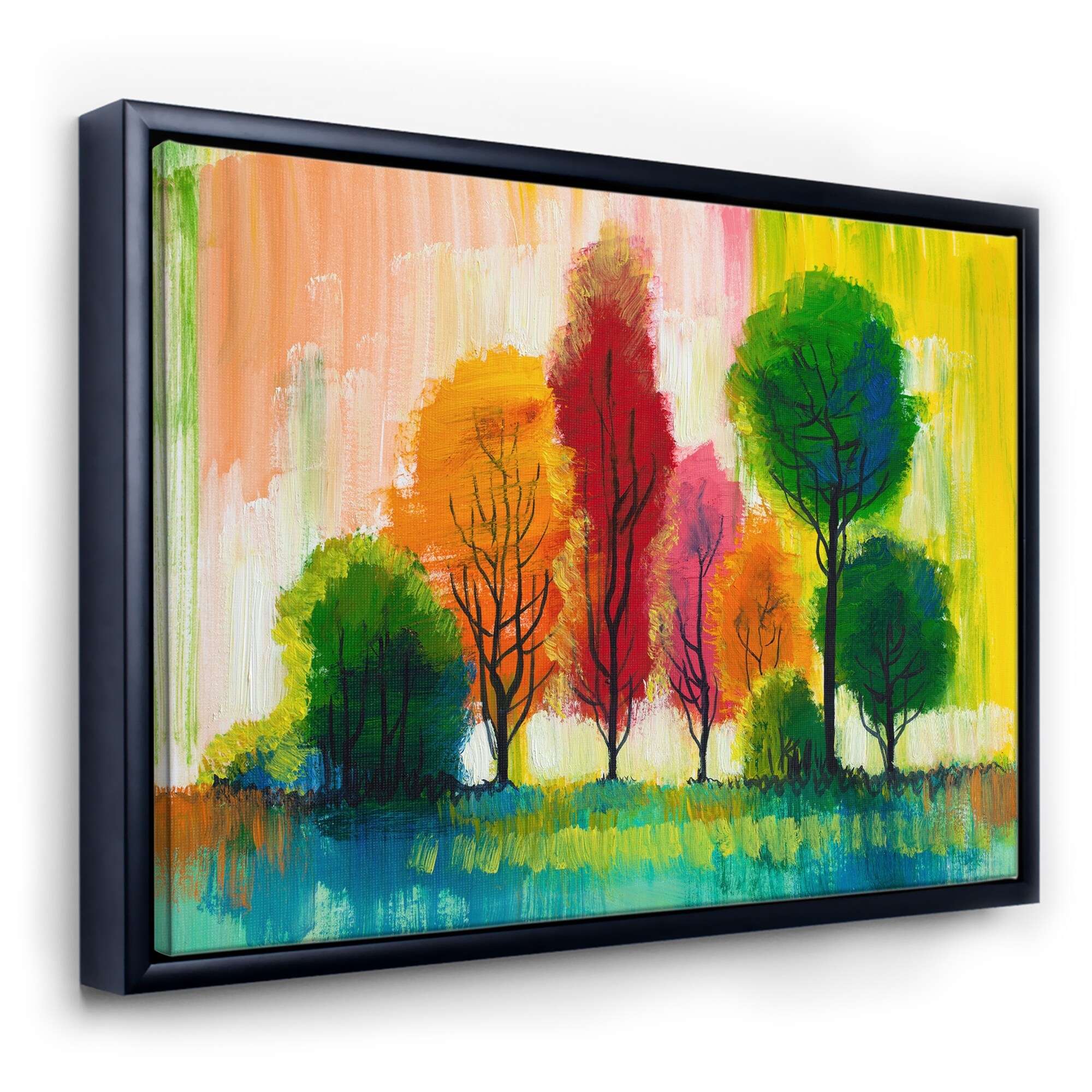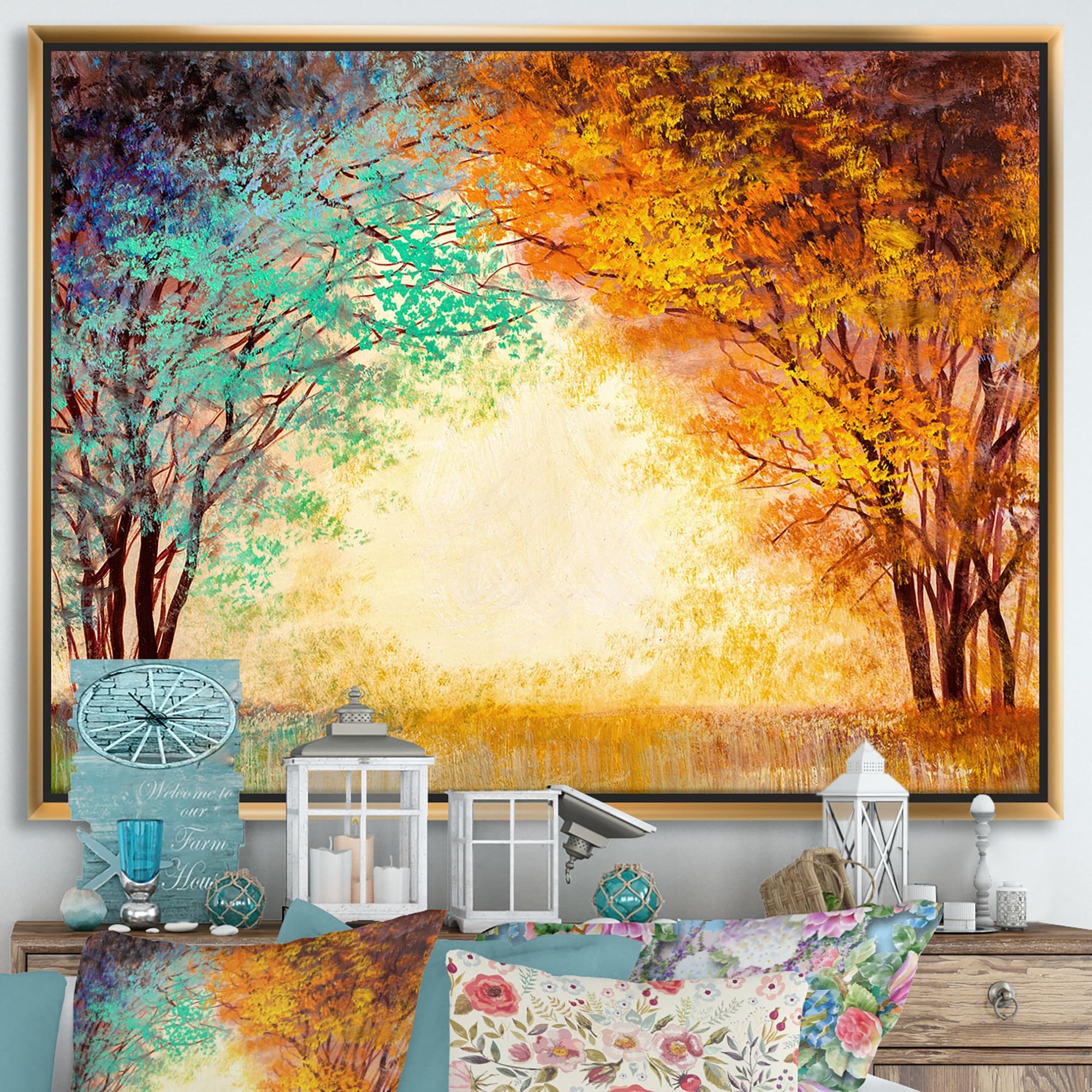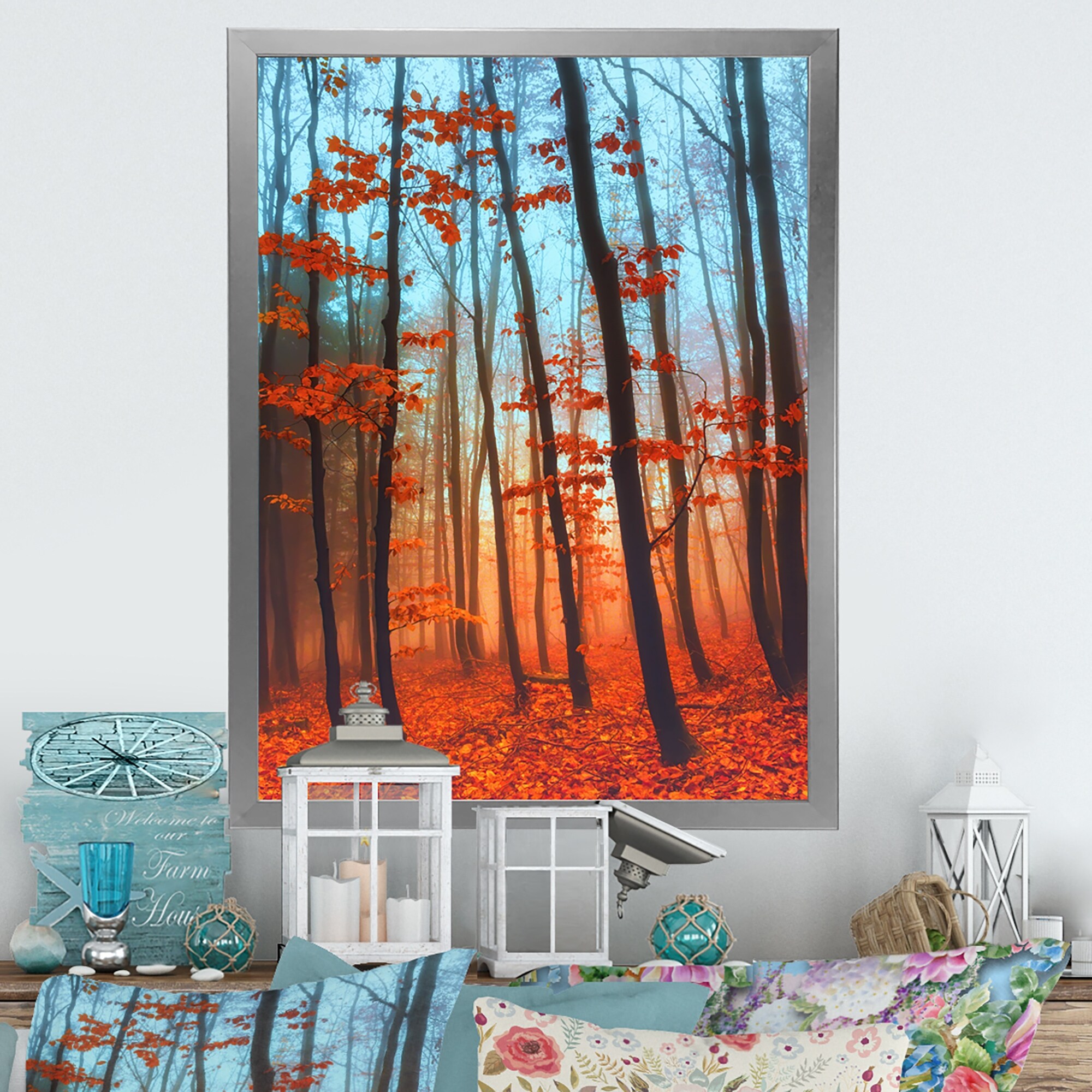 Designart "Autumn Colored Forest Treescape IX" Farmhouse Framed Canvas Wall Art Print