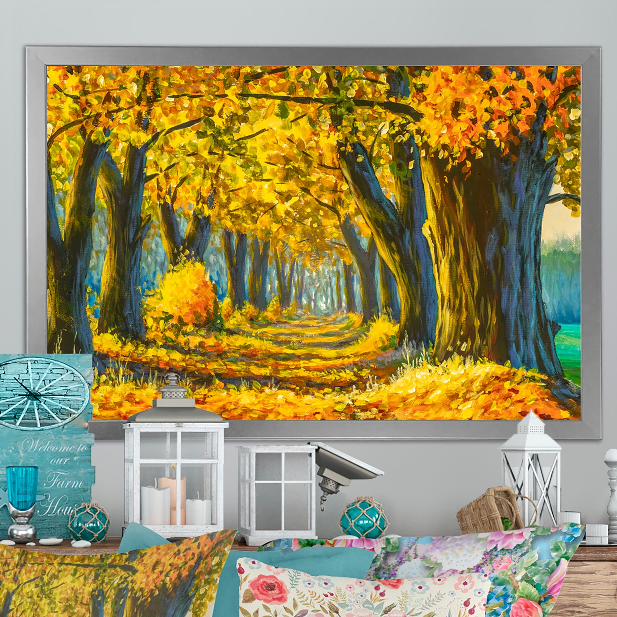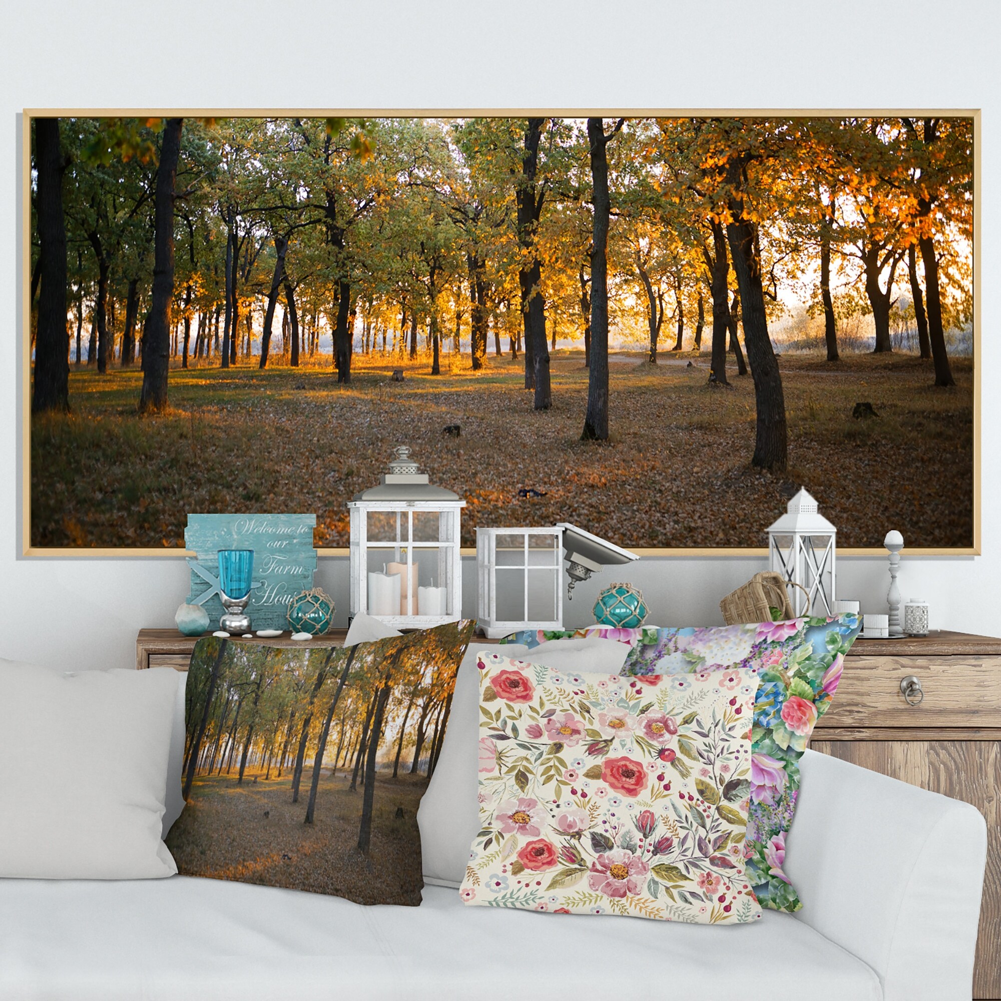 Designart "Autumn Colored Forest Treescape XXII" Farmhouse Framed Canvas Wall Art Print