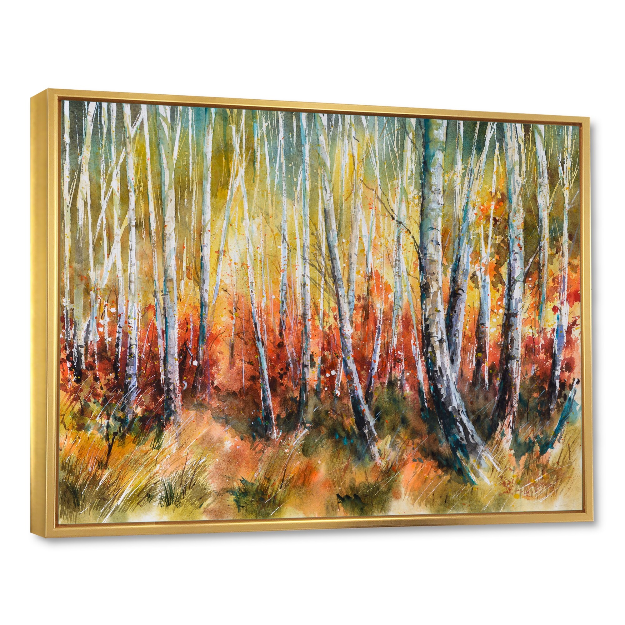 Designart "White Birches in Dense Autumn Forest" Tropical Framed Canvas Wall Art Print