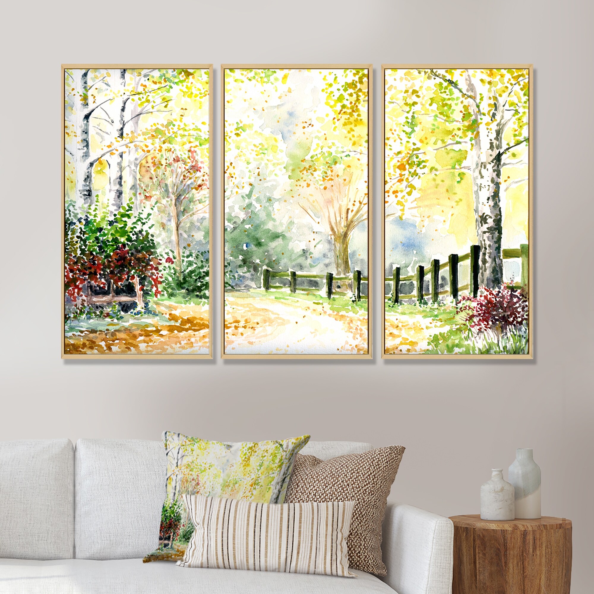 Designart "Autumn Countryside Landscape in the Afternoon" Traditional Framed Artwork Set of 3 - 4 Colors of Frames