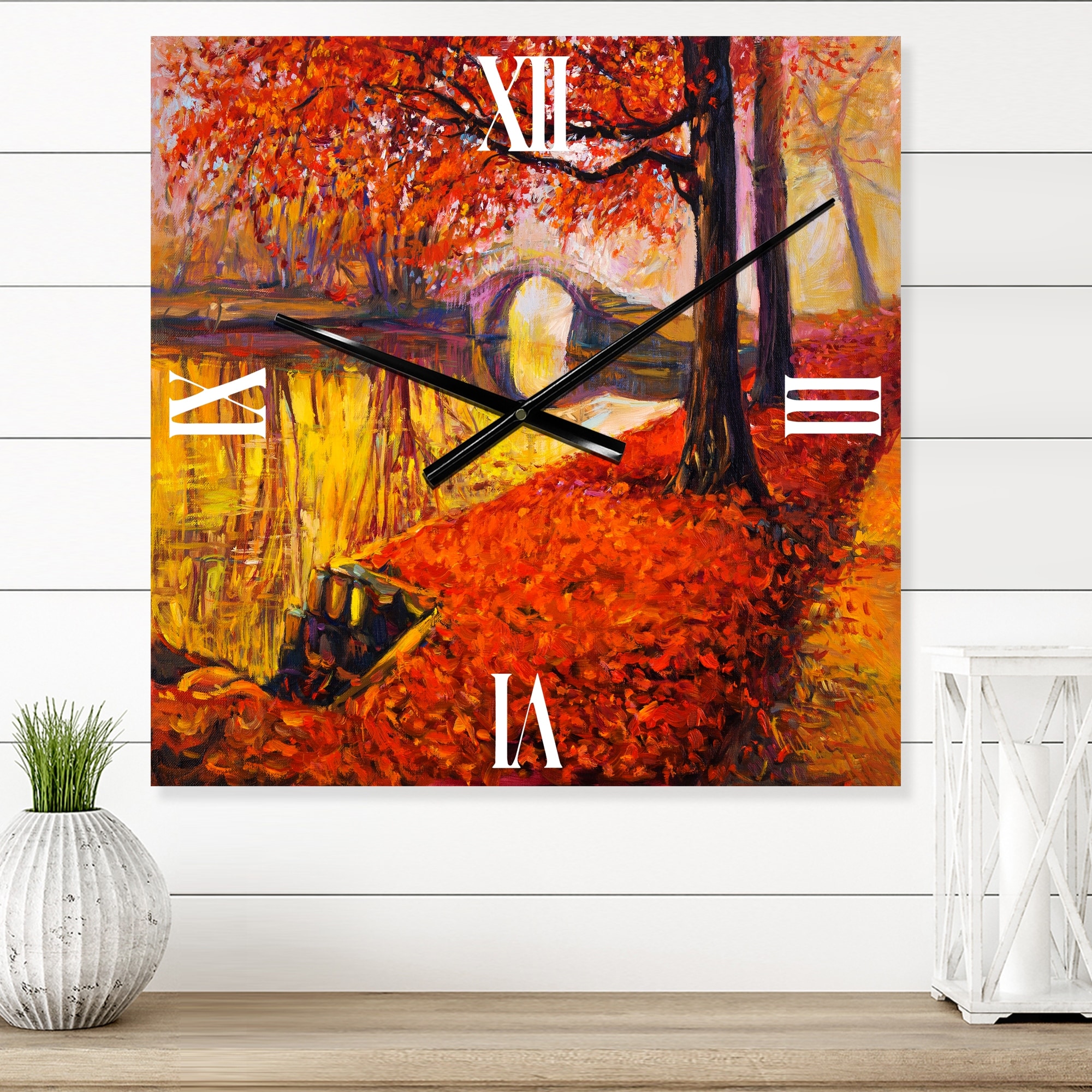 Designart 'Little Bridge in Orange Autumn Landscape I' Traditional Large Wall Clock