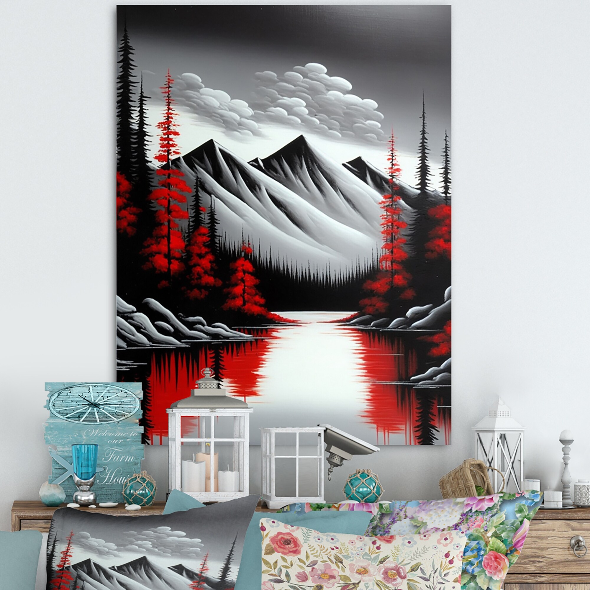 Designart "Autumn At the Countryhouse I" Lake House Cottage Framed Canvas Wall Art Print