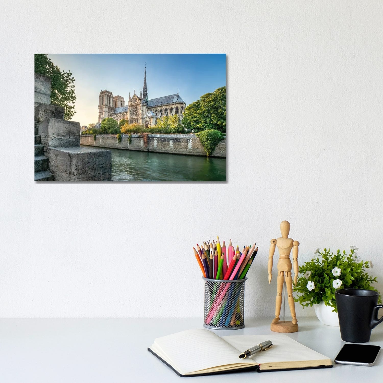 iCanvas "Notre-Dame De Paris Along the Banks of the Seine, Paris, France" by Jan Becke Canvas Print