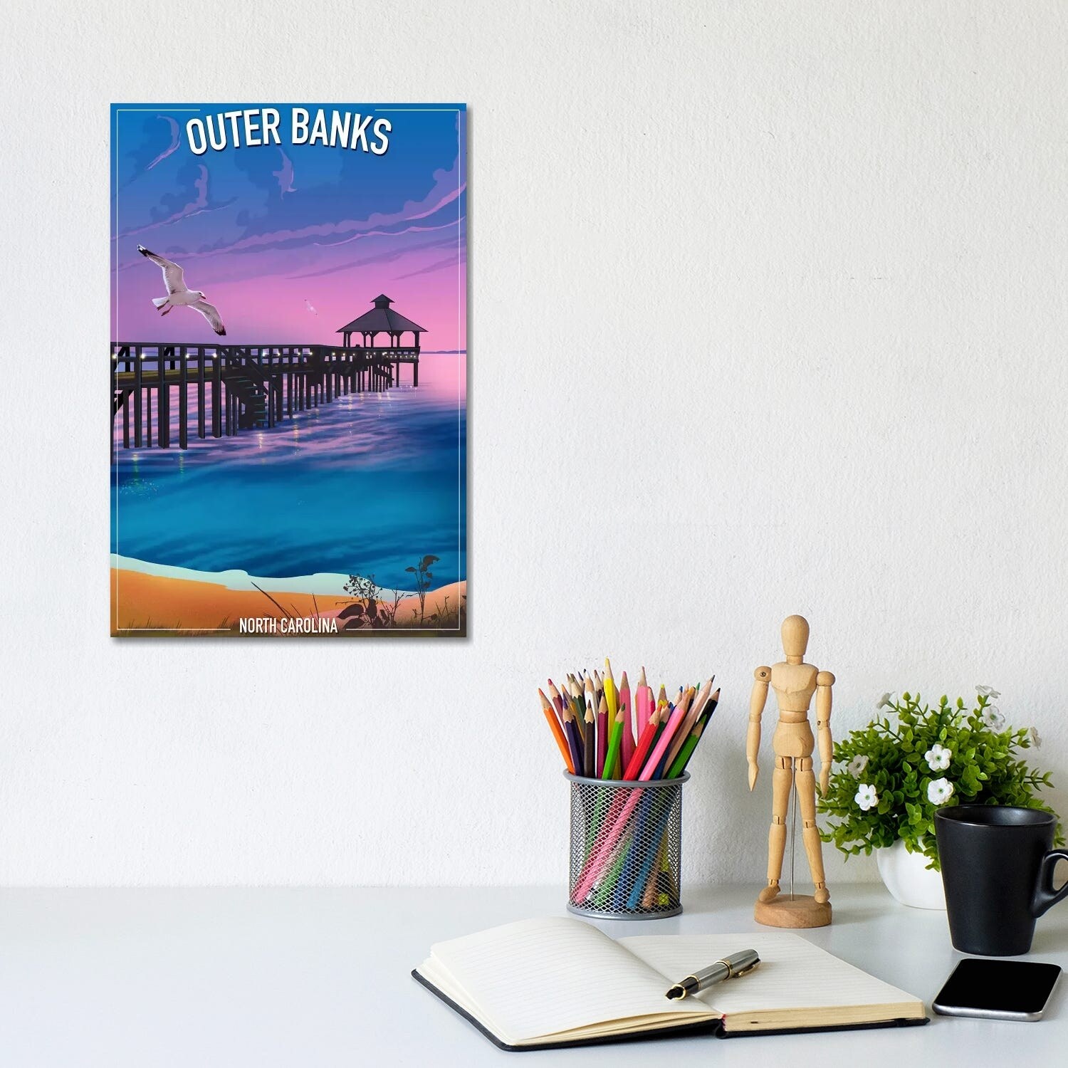 Outer Banks Currituck Sound Promenade Waterfront Gallery Wrapped Floater-framed Canvas