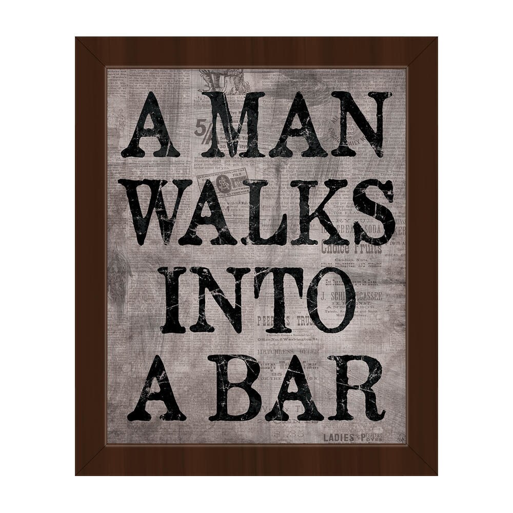 Man Walks Into A Bar Framed Canvas Wall Art Print
