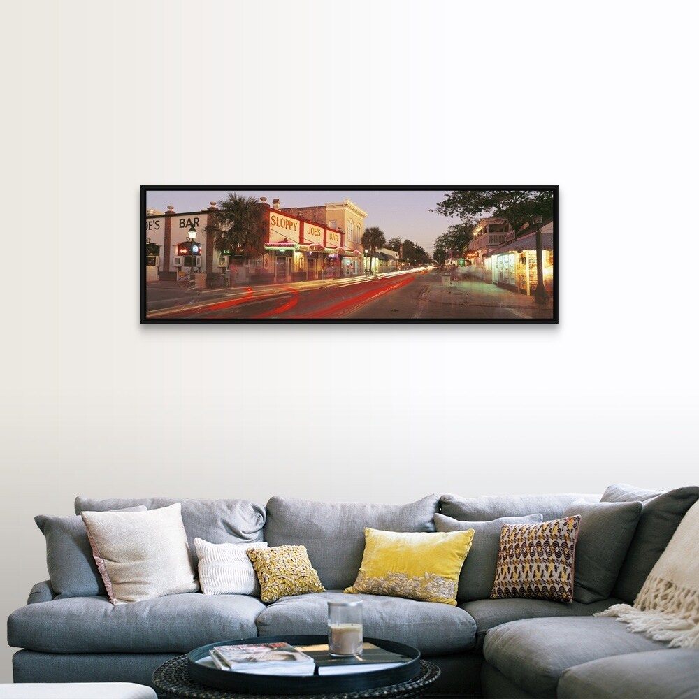 "Florida, Key West, Duval Street, Sloppy Joe's Bar illuminated at night" Black Float Frame Canvas Art