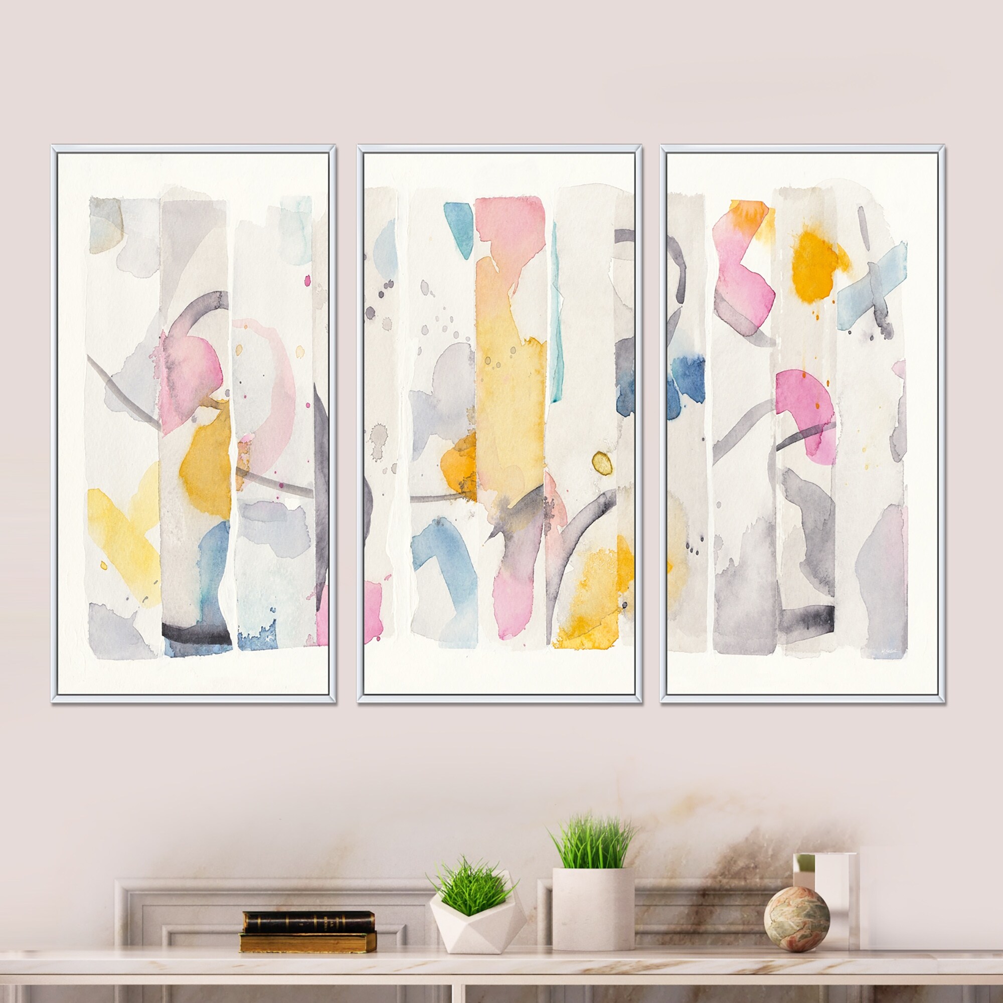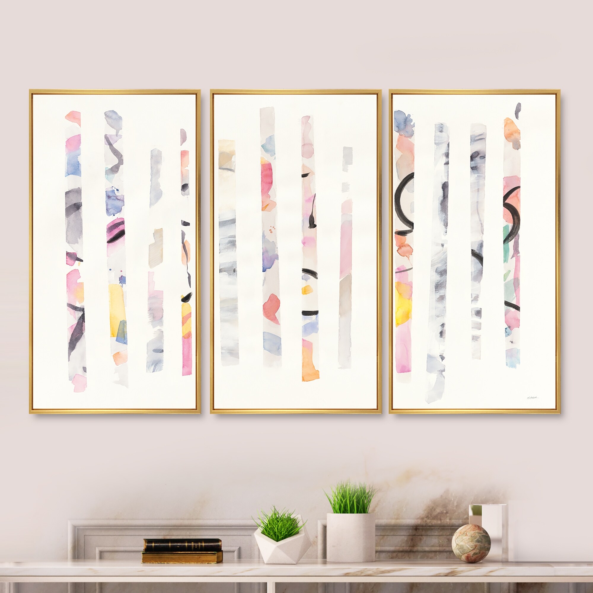 Designart "Multi-Color Geometric Bars II" Modern & Contemporary Framed Wall Art Set of 3 - 4 Colors of Frames