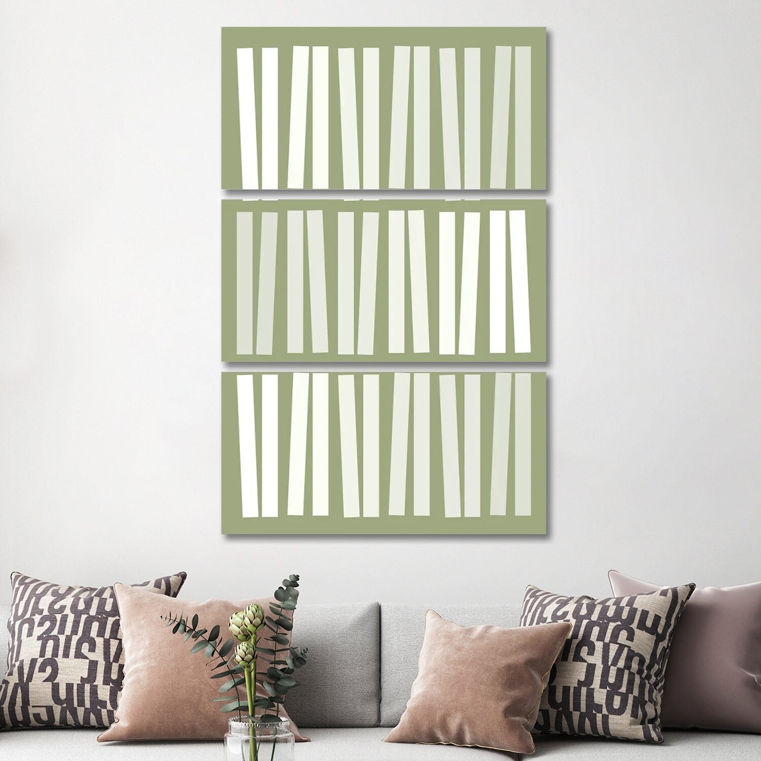 iCanvas "Dancing Bars in Sage" by blursbyai 3-Piece Canvas Wall Art Set