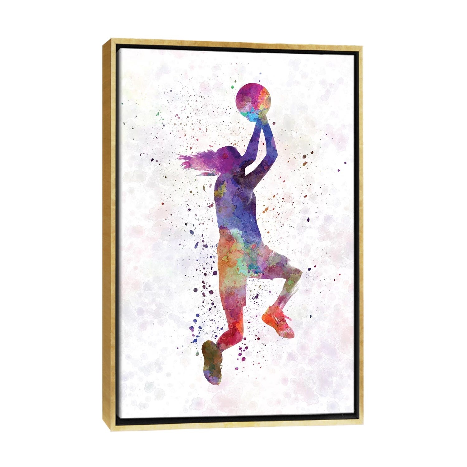 iCanvas "Young Woman Basketball Player in Watercolor IV" by Paul Rommer Framed Canvas Print