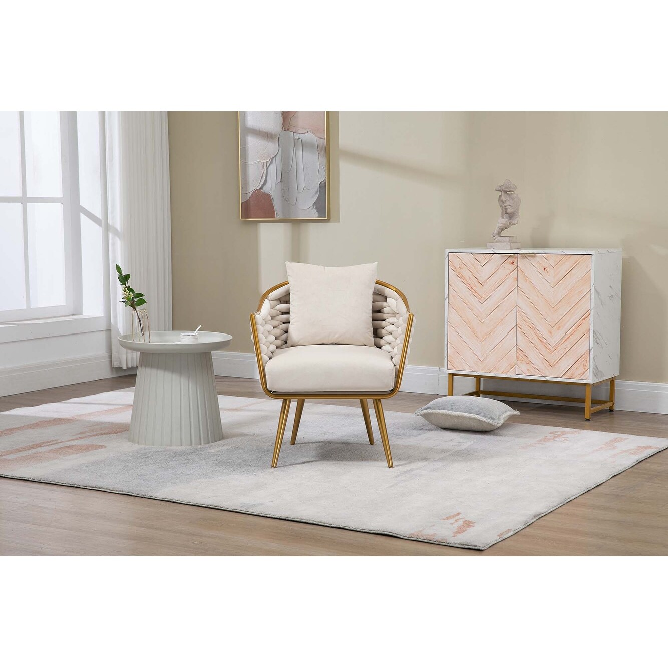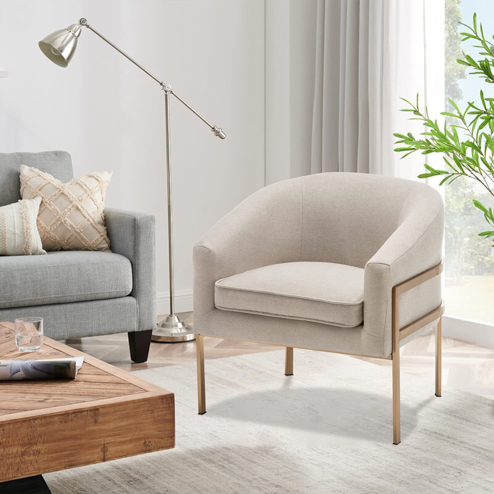 29.33" Polyster Fabric Upholstered Accent Chair with Tufted Cushion and Gold Metal Legs for Living Room, Bedroom