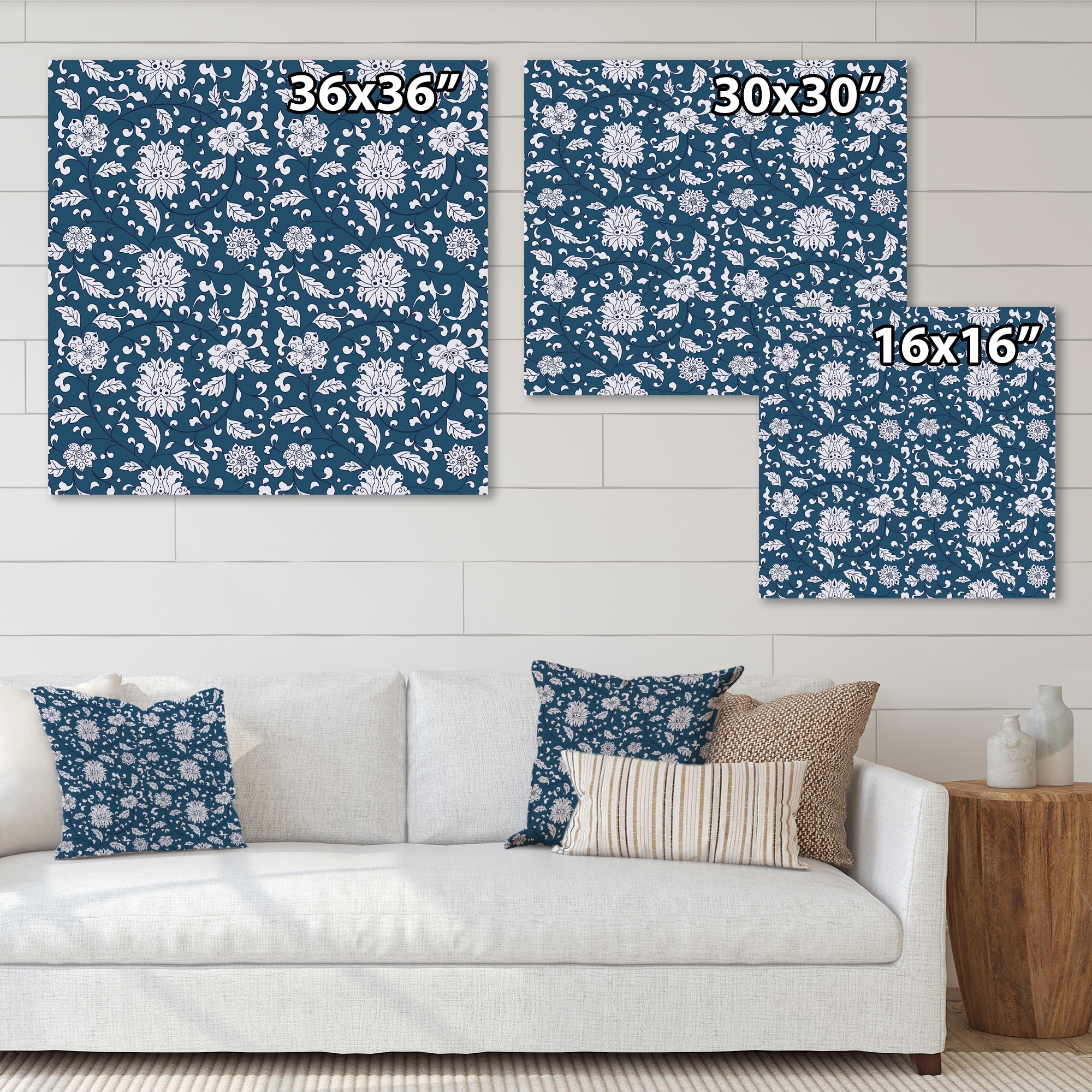 Designart "White Flowers on Dark Blu" Patterned Framed Canvas Wall Art Print