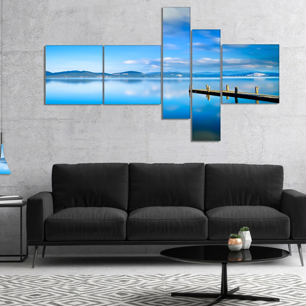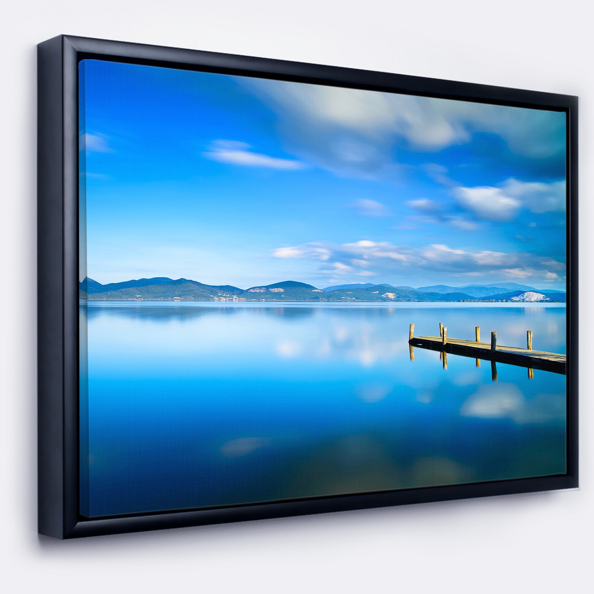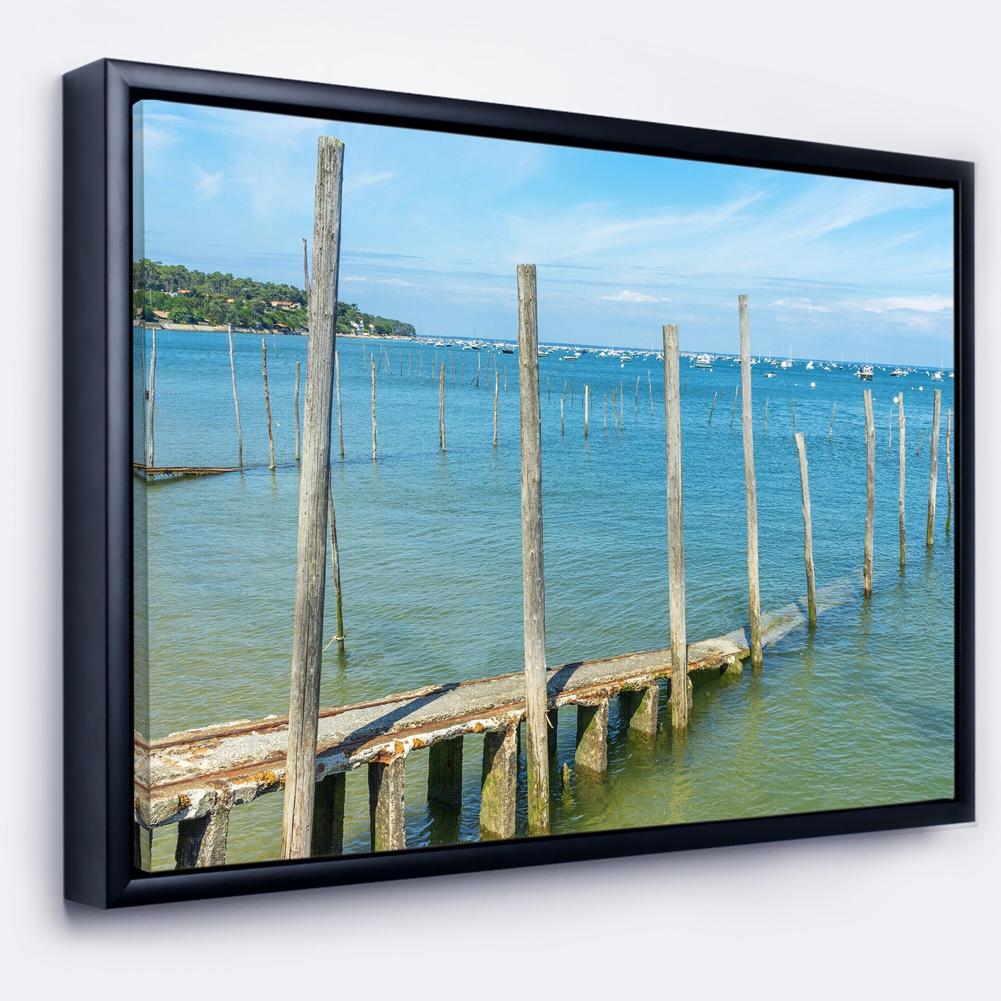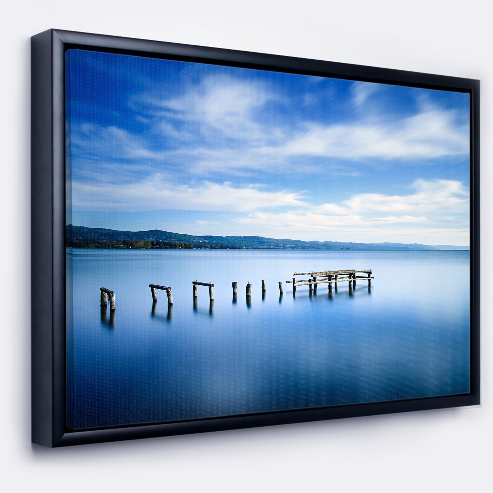 Designart "Wooden Piers by Blue Sea" Seascape Framed Canvas Art Print