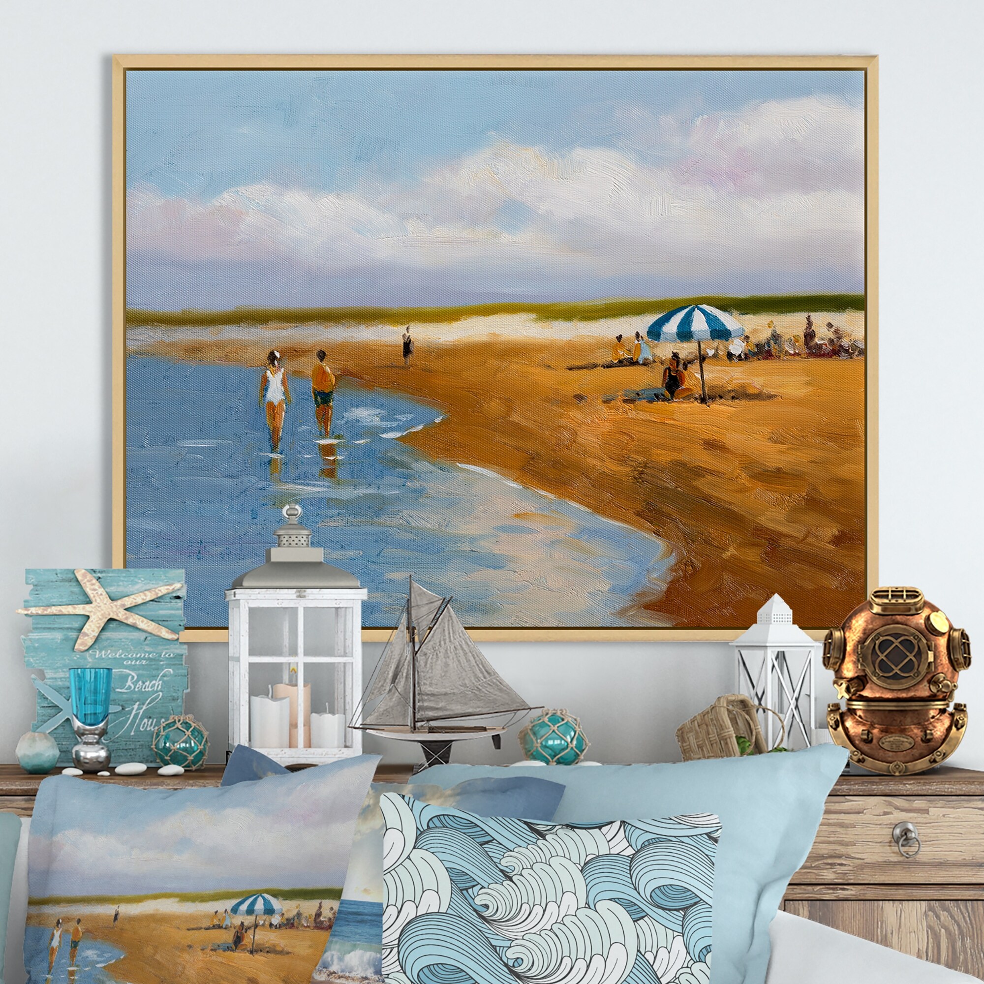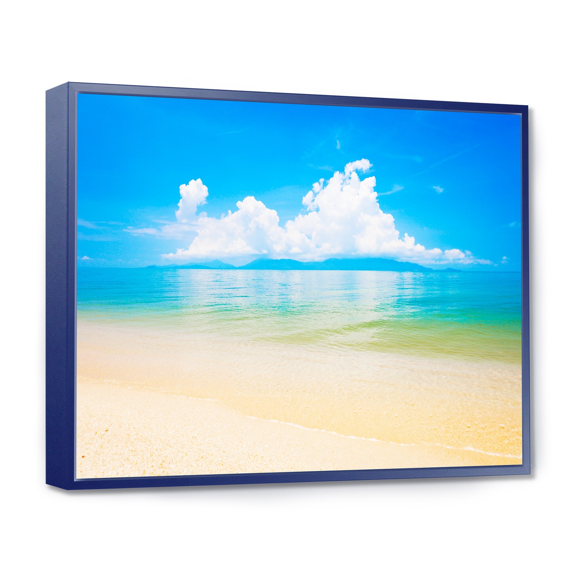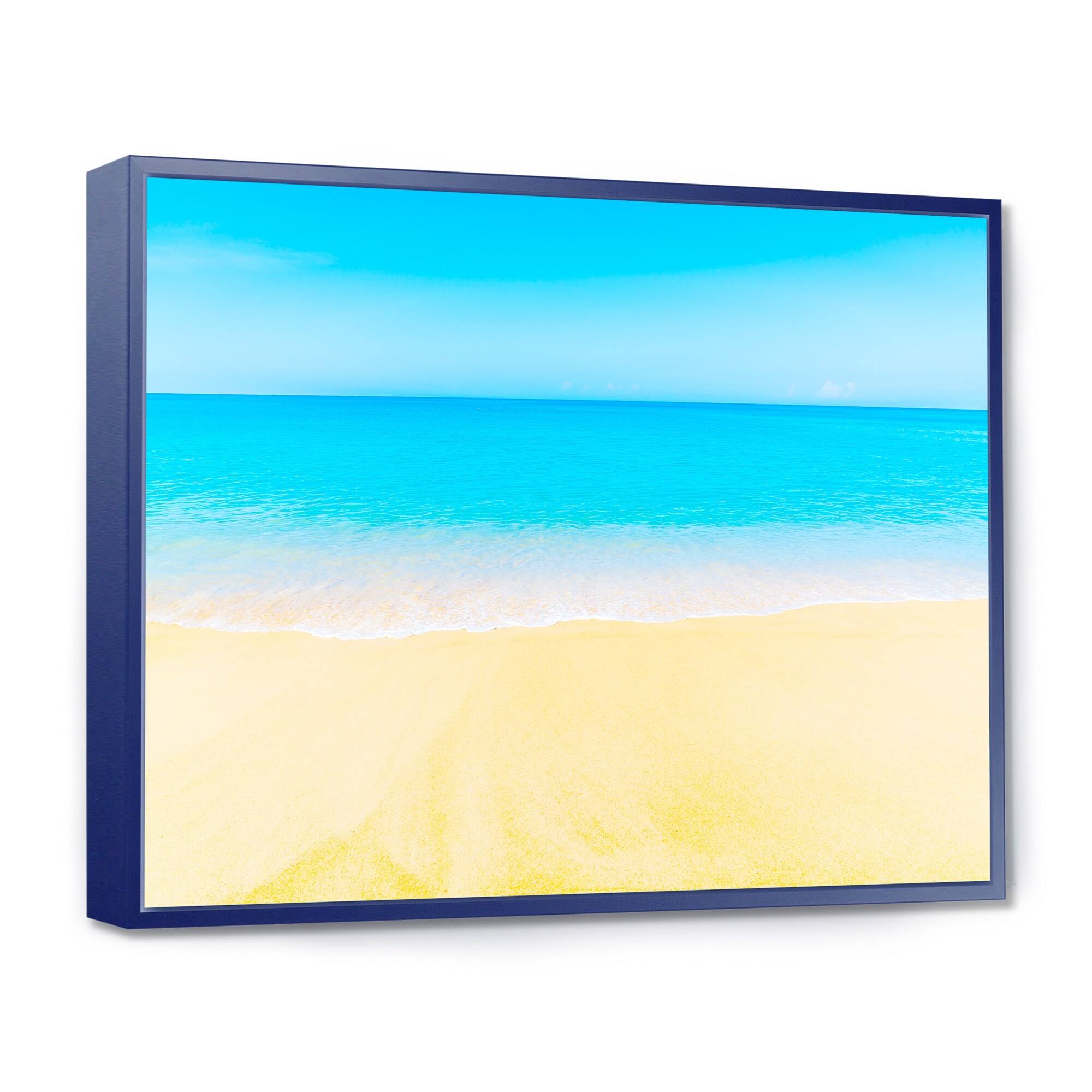 Designart "Sunset On Beautiful Sand Beach With Blue Sea Water" Nautical & Coastal Framed Canvas Wall Art Print