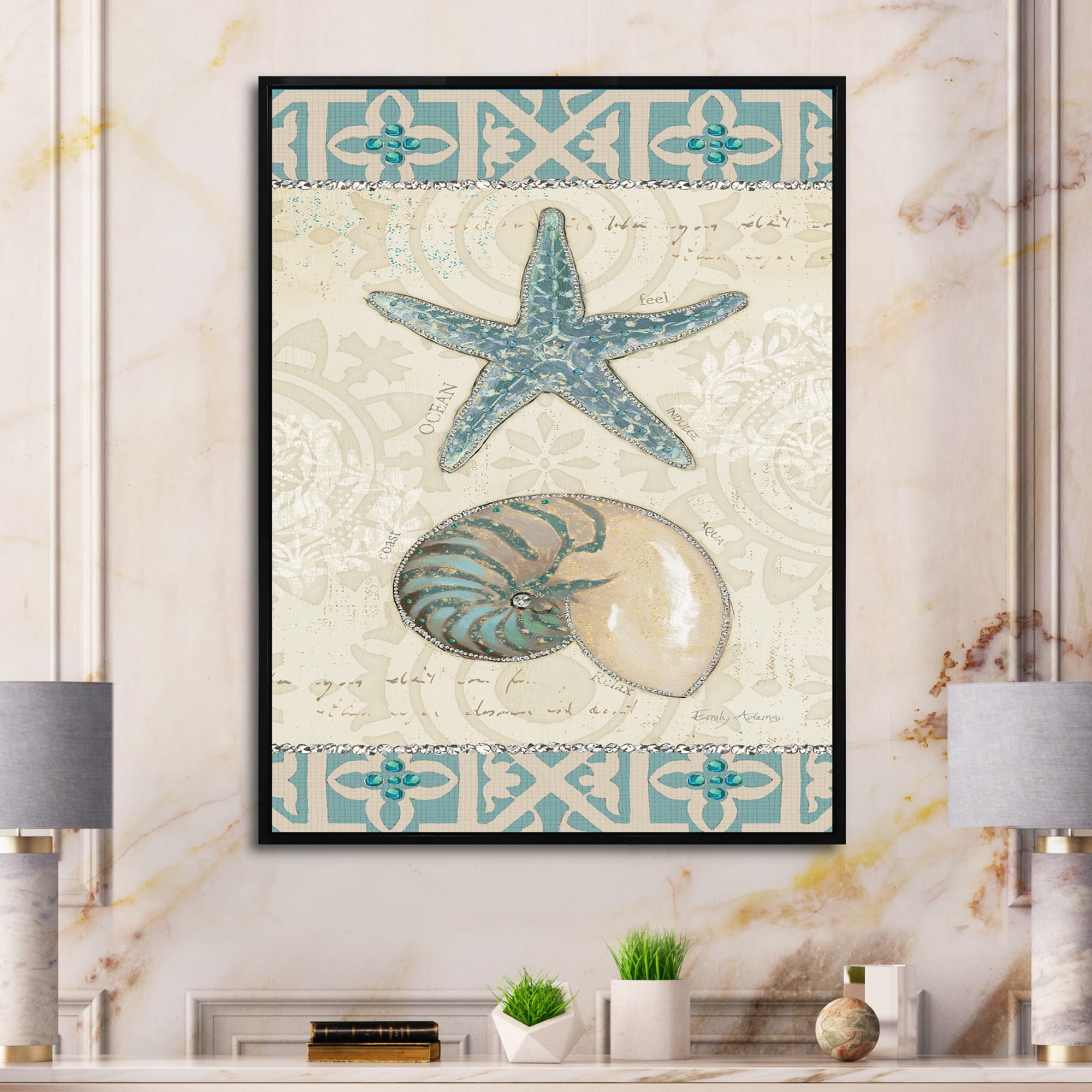 Designart "Seastar and Blue Sea Shell I" Nautical & Coastal Framed Canvas