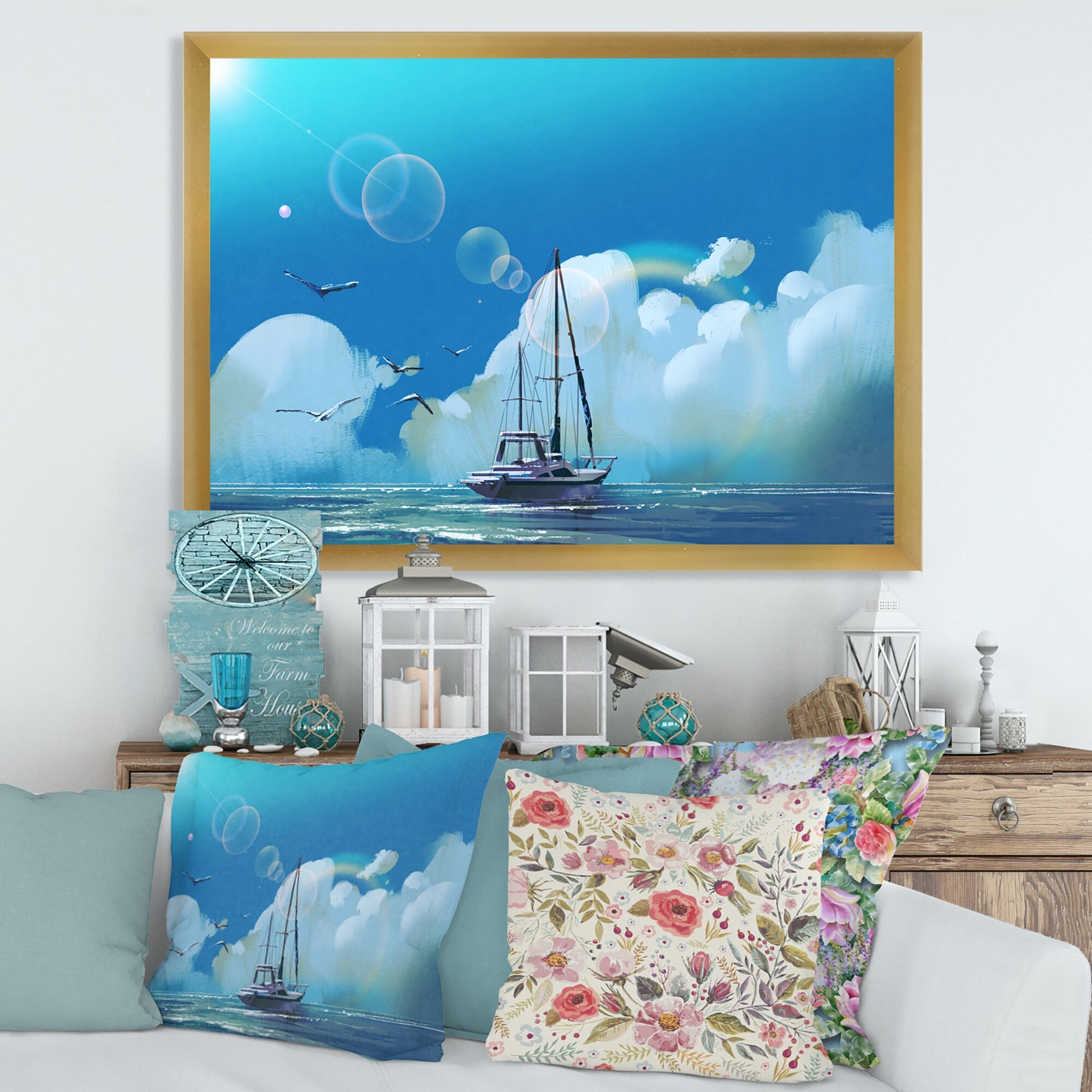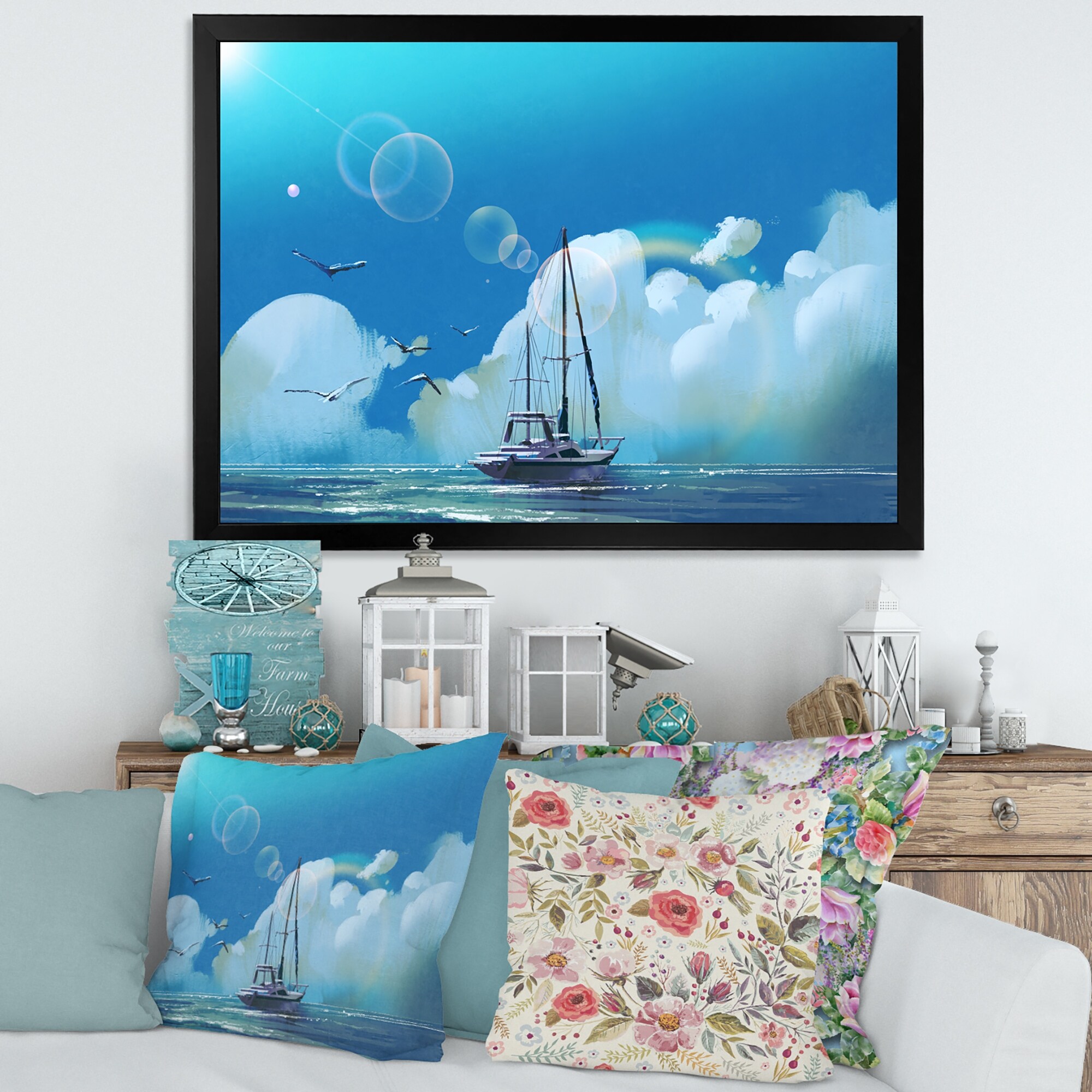 Designart "The Sailboat on the Blue Sea Against Summer Sky" Nautical & Coastal Framed Art Print