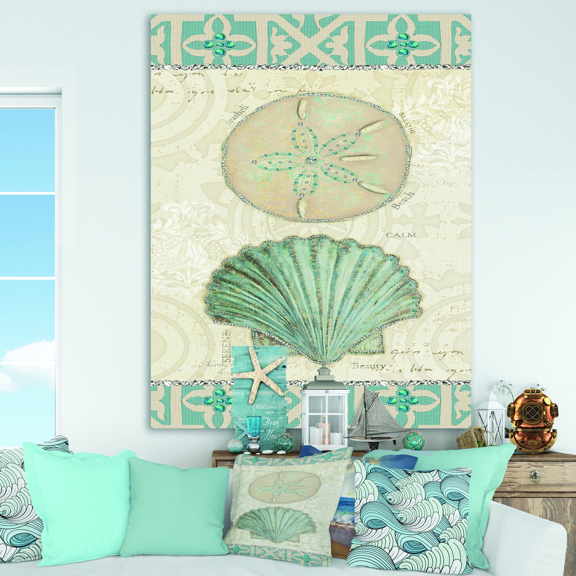Designart "Seastar and Blue Sea Shell II" Nautical & Coastal Premium Canvas Wall Art