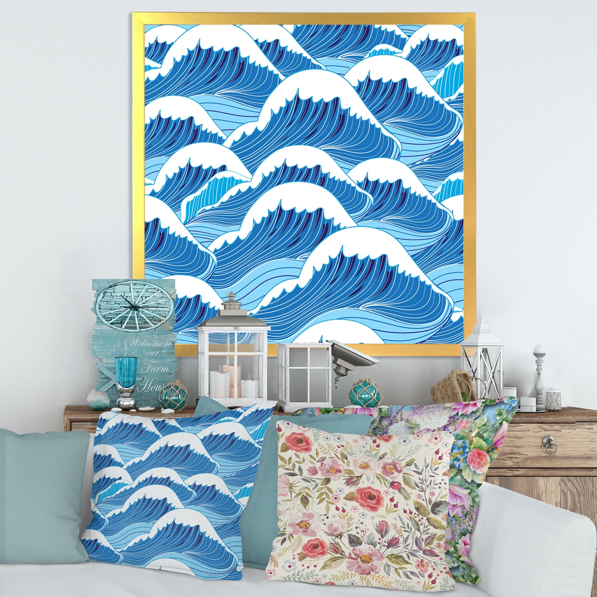 Designart "Abstract Light Blue Sea Waves" Nautical & Coastal Framed Art Print