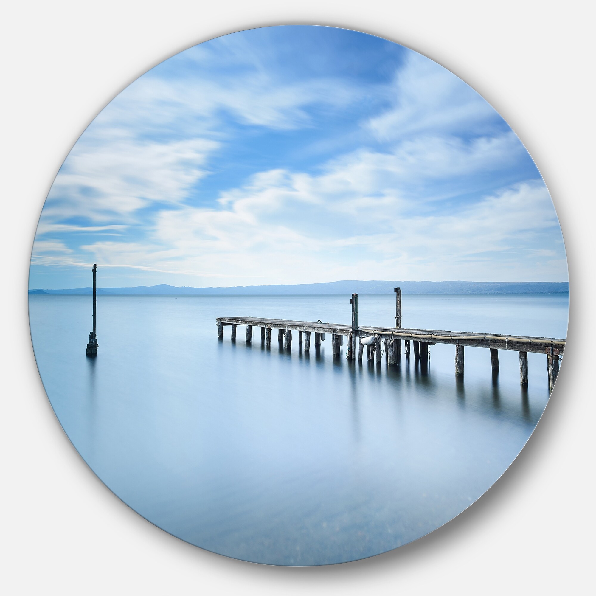 Designart 'Pier Infinite to Blue Sea' Seascape Photo Round Wall Art