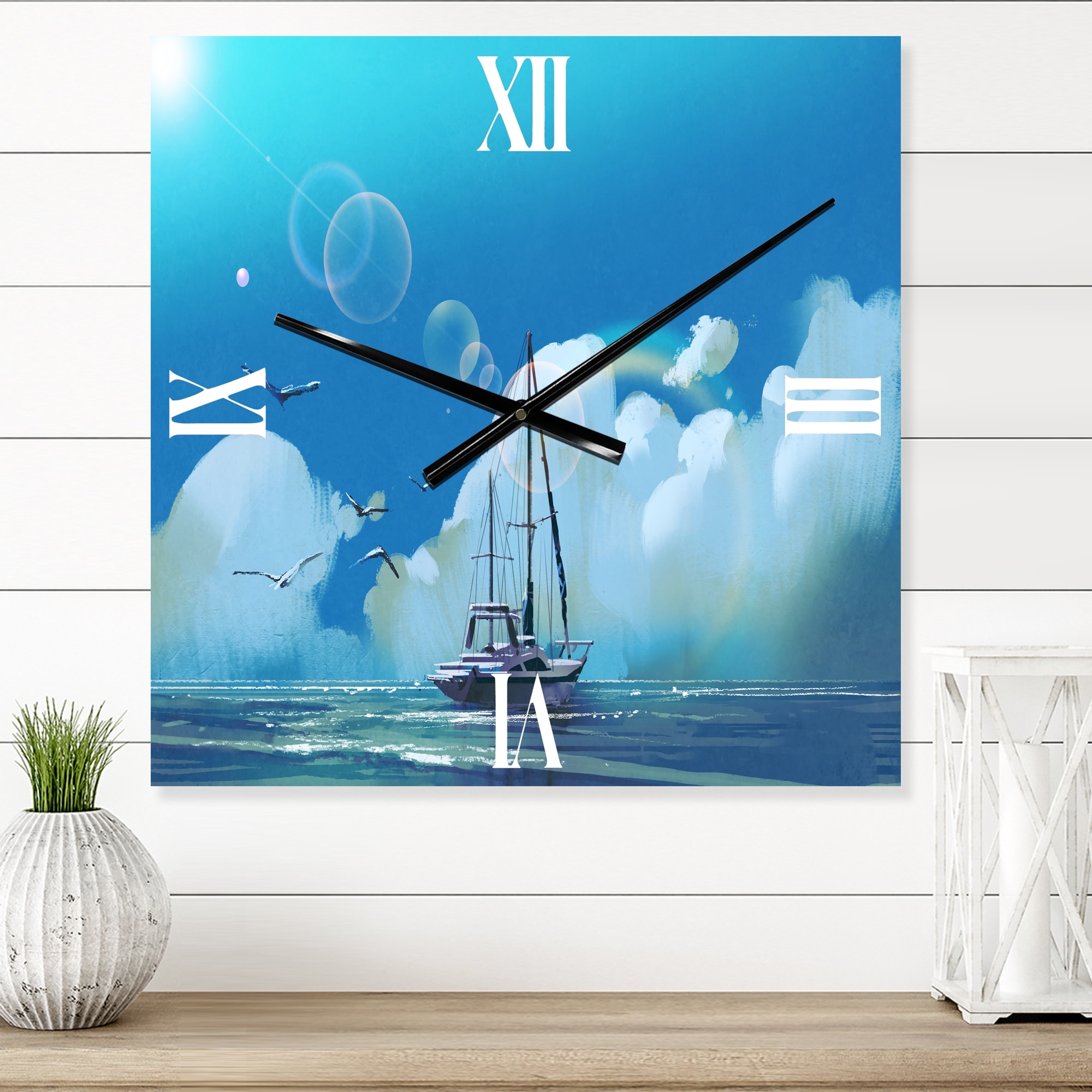 Designart 'The Sailboat on the Blue Sea Against Summer Sky' Nautical & Coastal Metal Wall Clock