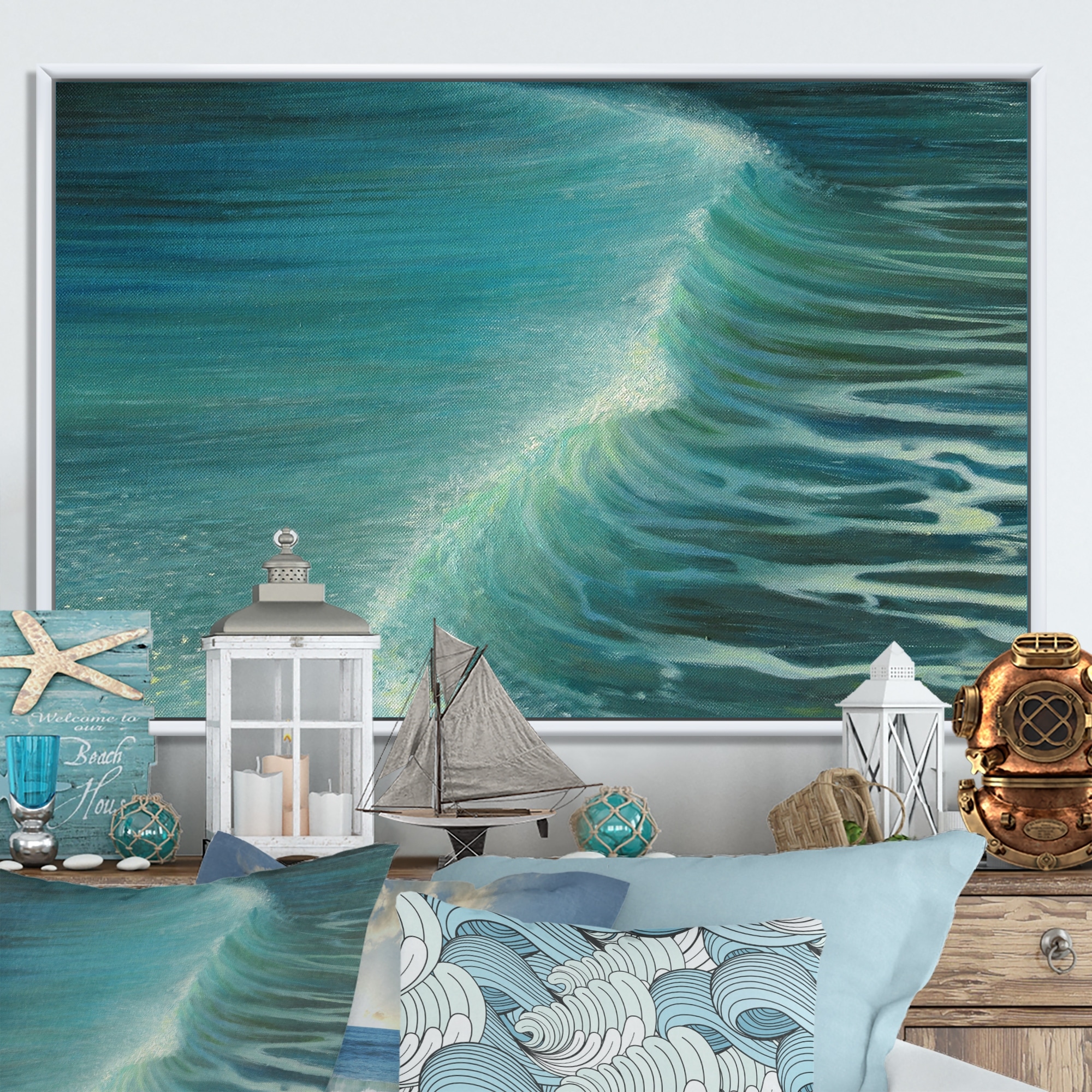 Designart "Abstract Light Blue Sea Waves" Nautical & Coastal Framed Canvas Wall Art Print