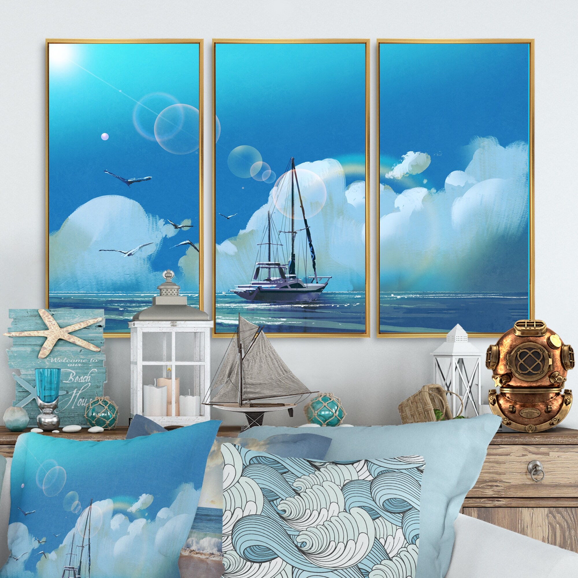 Designart "The Sailboat on the Blue Sea Against Summer Sky" Nautical & Coastal Framed Wall Art Set of 3 - 4 Colors of Frames