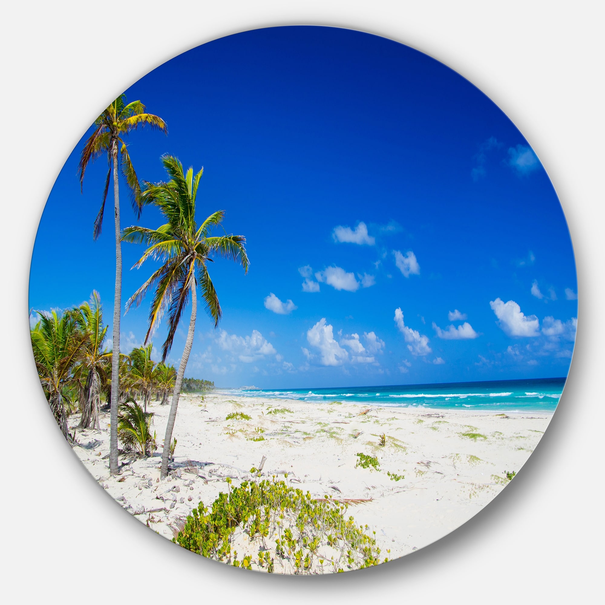 Designart 'Beautiful Blue Sea with Palms' Seashore Photo Disc Metal Wall Art