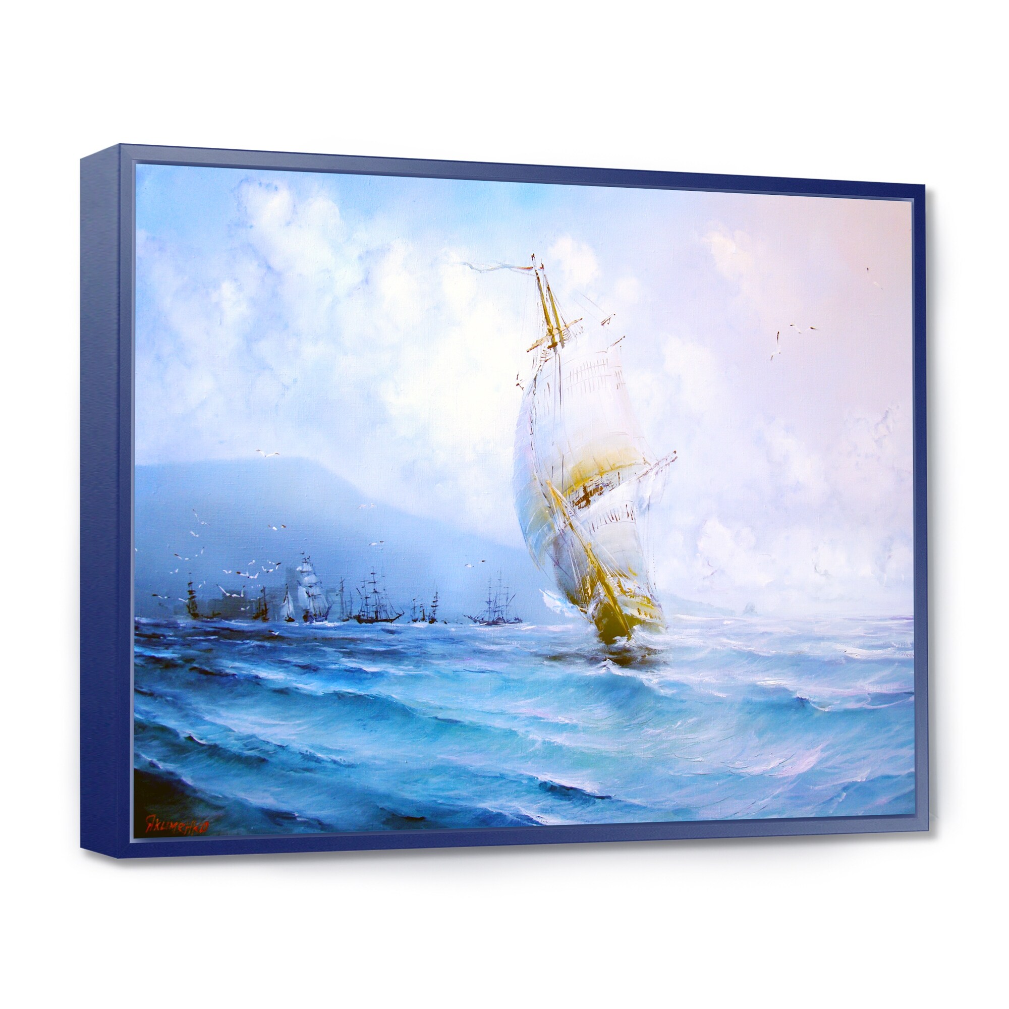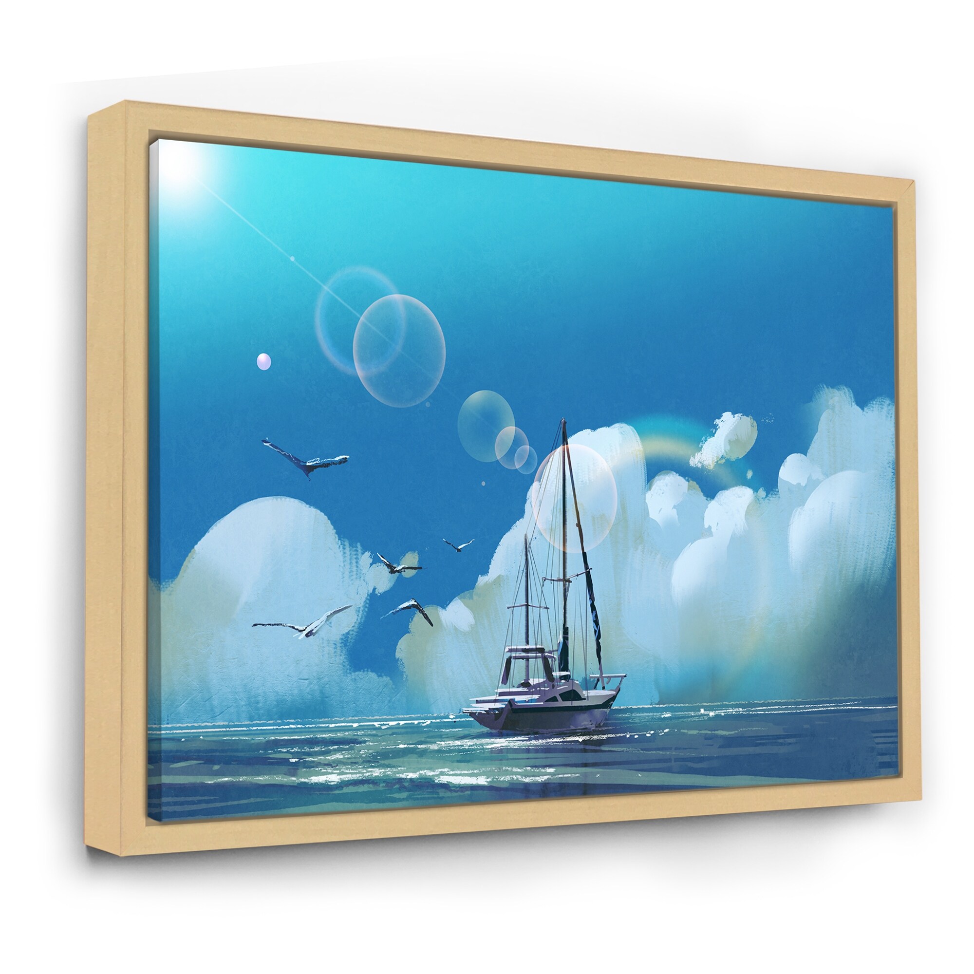 Designart "The Sailboat on the Blue Sea Against Summer Sky" Nautical & Coastal Framed Canvas Wall Art Print