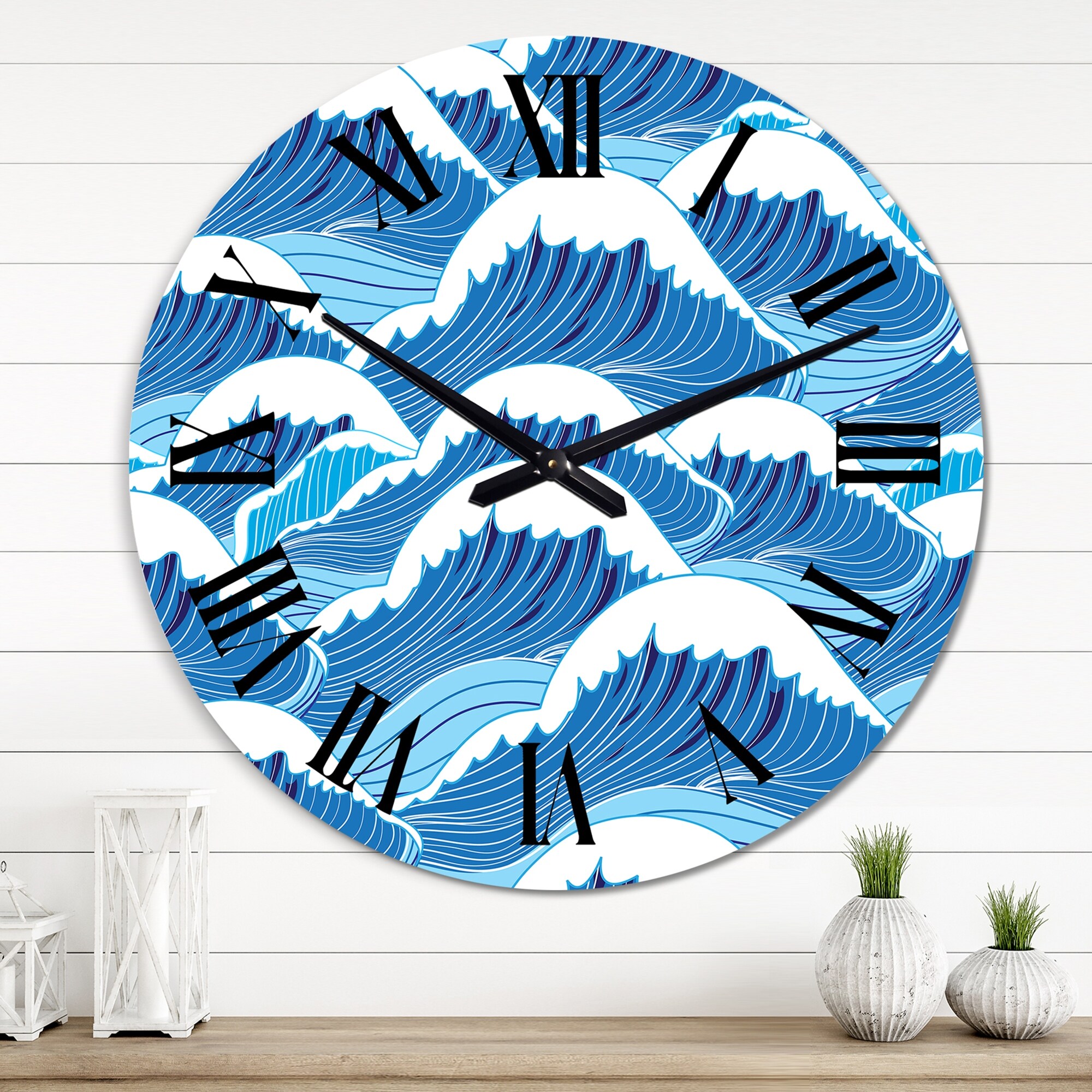 Designart 'Abstract Light Blue Sea Waves' Nautical & Coastal wall clock