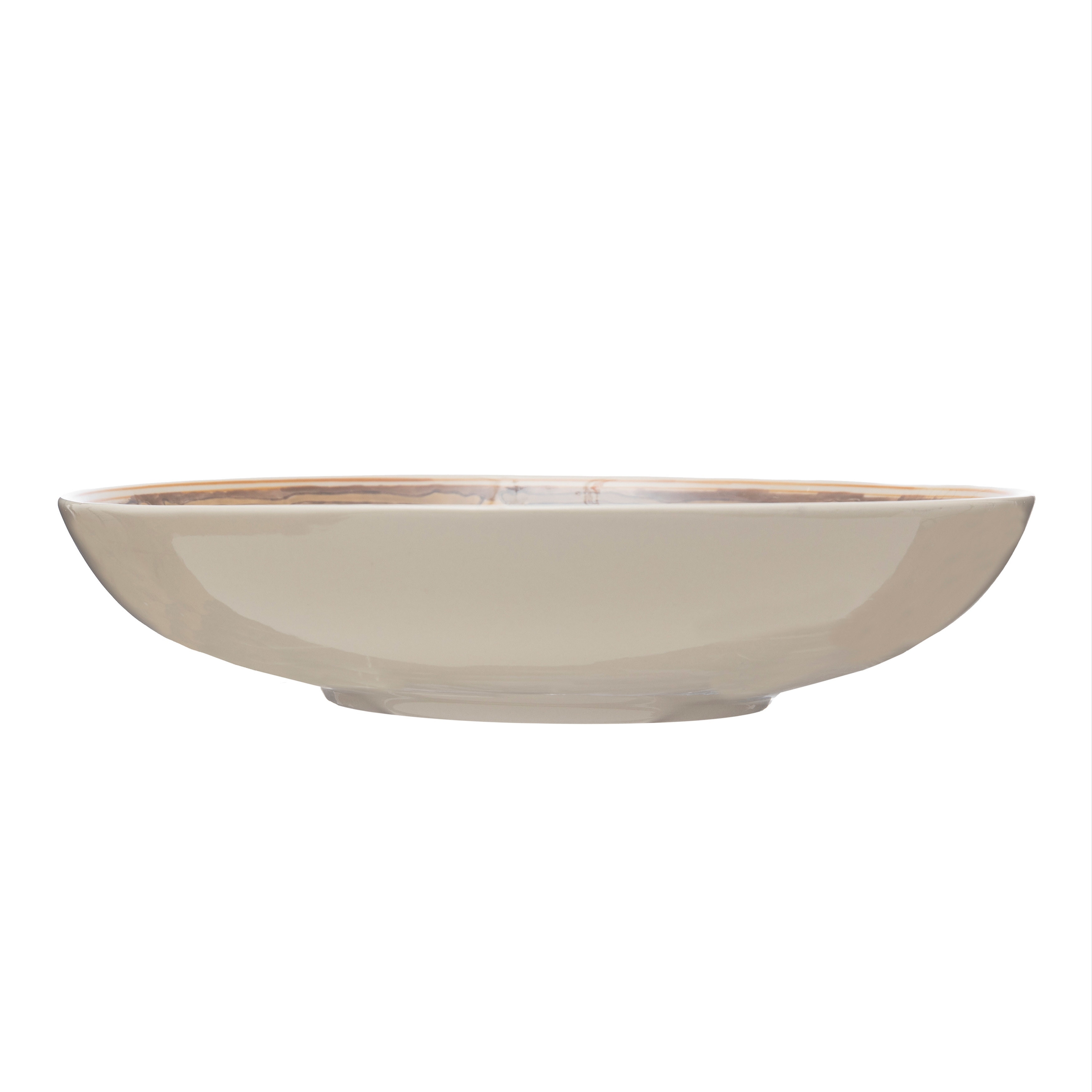 Hand Painted Stoneware Serving Bowl with Pattern - 15.8"L x 15.8"W x 4.0"H