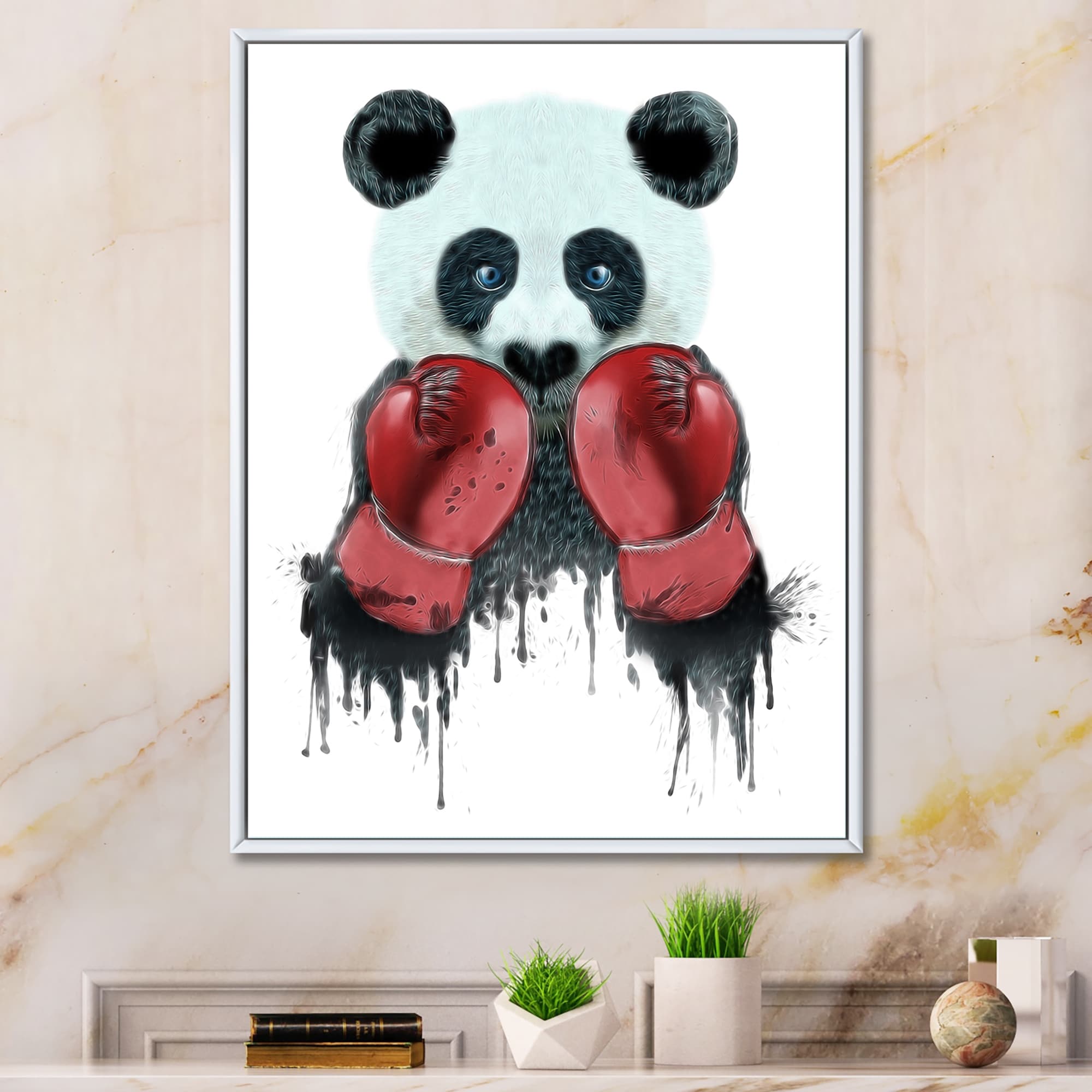 Designart "Hipster Boxer Panda Ready for Boxing" Children's Art Framed Canvas artwork